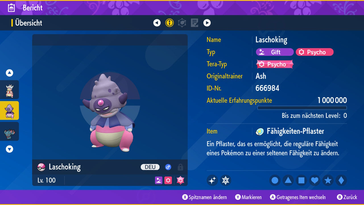 Tous les Pokémon sont également au niveau 100, ce qui signifie qu'ils ont déjà atteint le niveau maximum. Vous pouvez les utiliser immédiatement dans votre équipe numérique sans avoir à passer de niveau ou à vous entraîner.