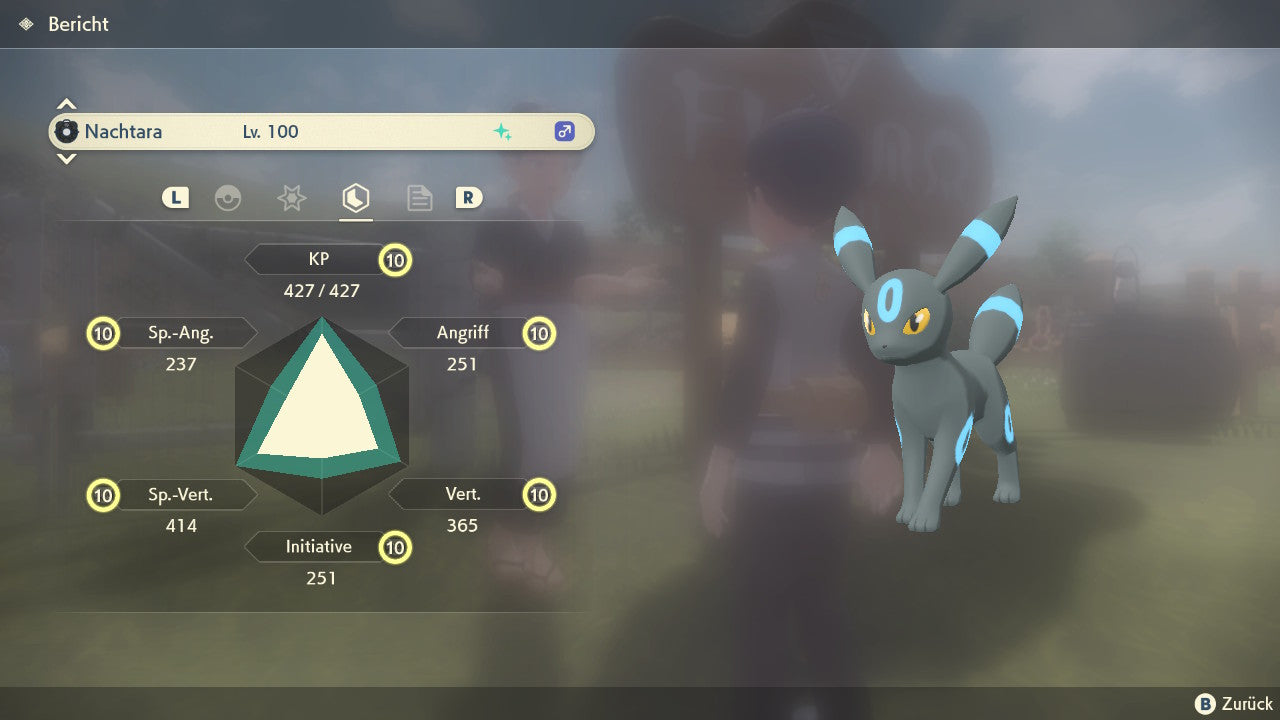 The Pokemon is equipped with impressive 6x31 IV values. This means that it has the maximum 31 IV/DV points for all six values (HP, Atk, Sp-Atk, Def, Sp-Def, Init). Your Pokemon therefore starts digital battles with outstanding strength.