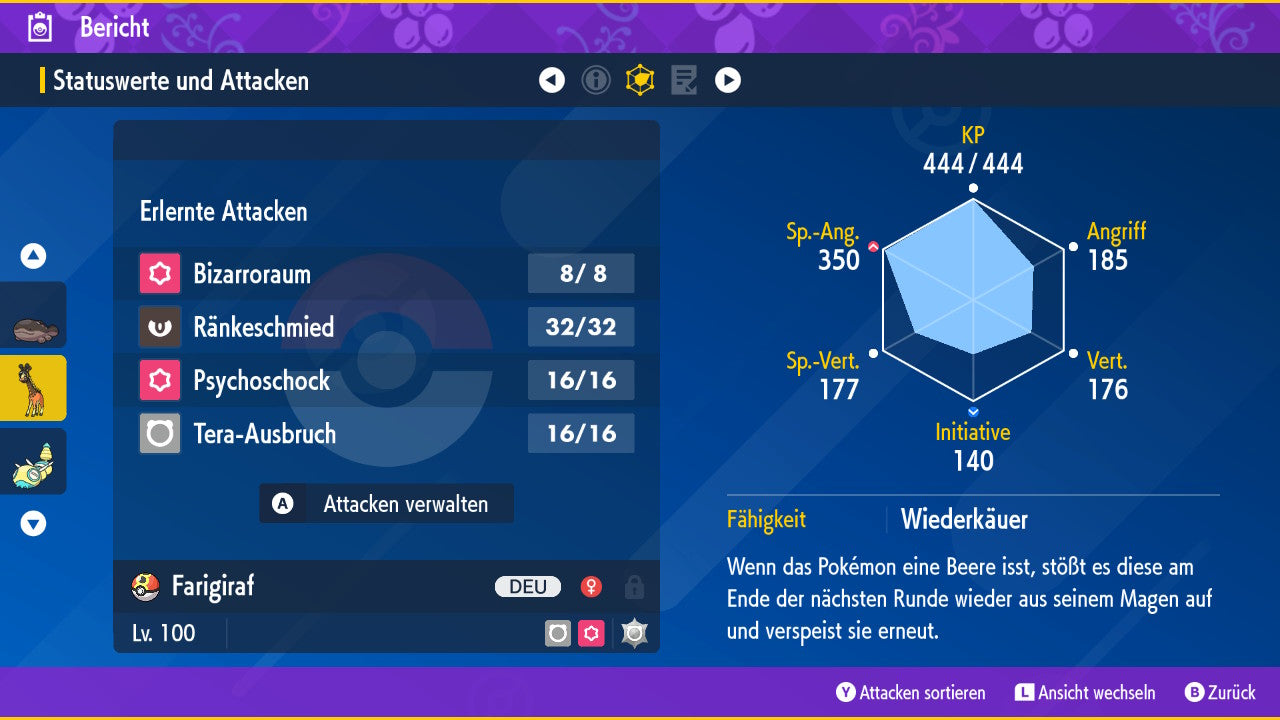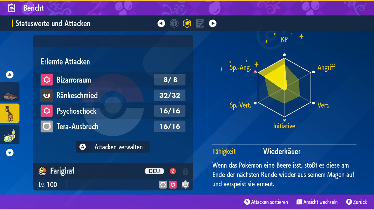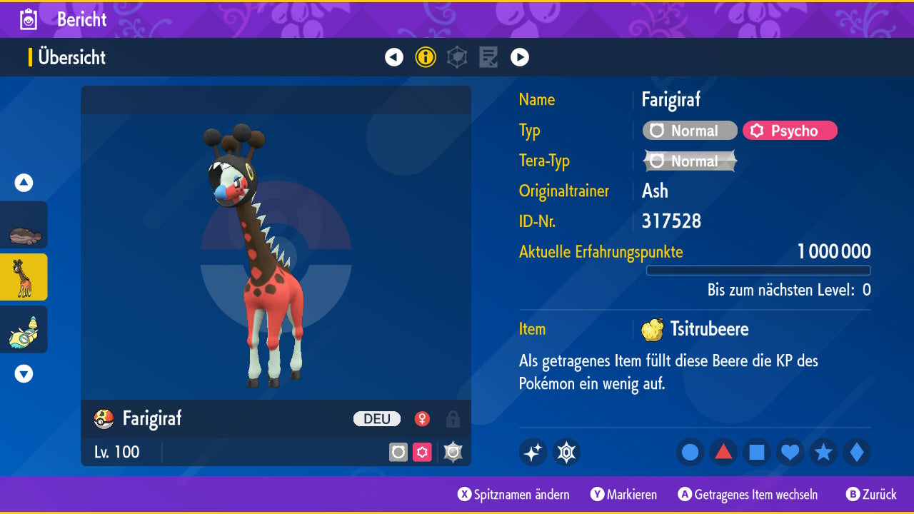The Pokemon is equipped with impressive 6x31 IV values. This means that it has the maximum 31 IV/DV points for all six values (HP, Atk, Sp-Atk, Def, Sp-Def, Init). Your Pokemon therefore starts digital battles with outstanding strength.