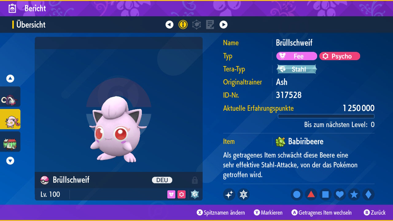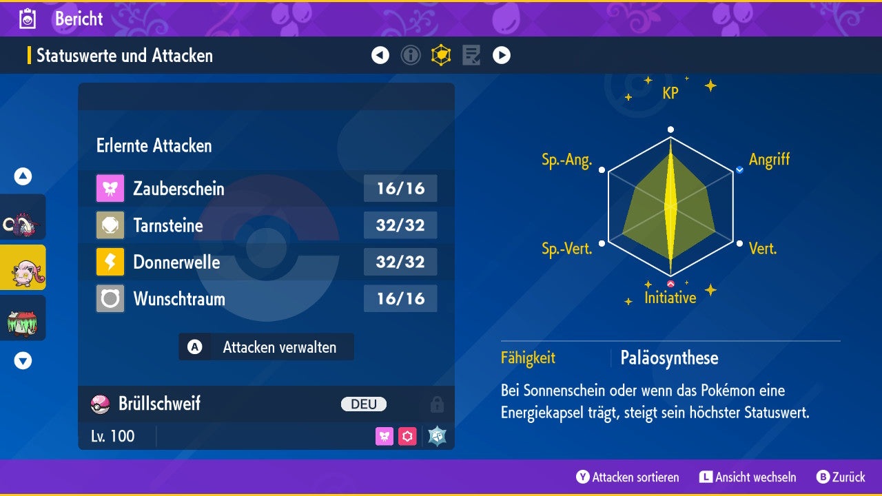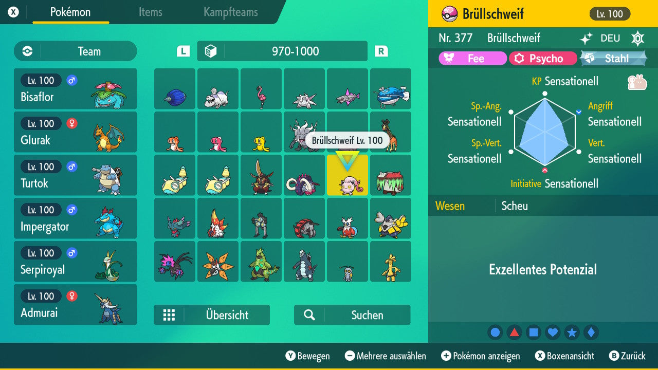 The Pokemon is equipped with impressive 6x31 IV values. This means that it has the maximum 31 IV/DV points for all six values (HP, Atk, Sp-Atk, Def, Sp-Def, Init). Your Pokemon therefore starts digital battles with outstanding strength.