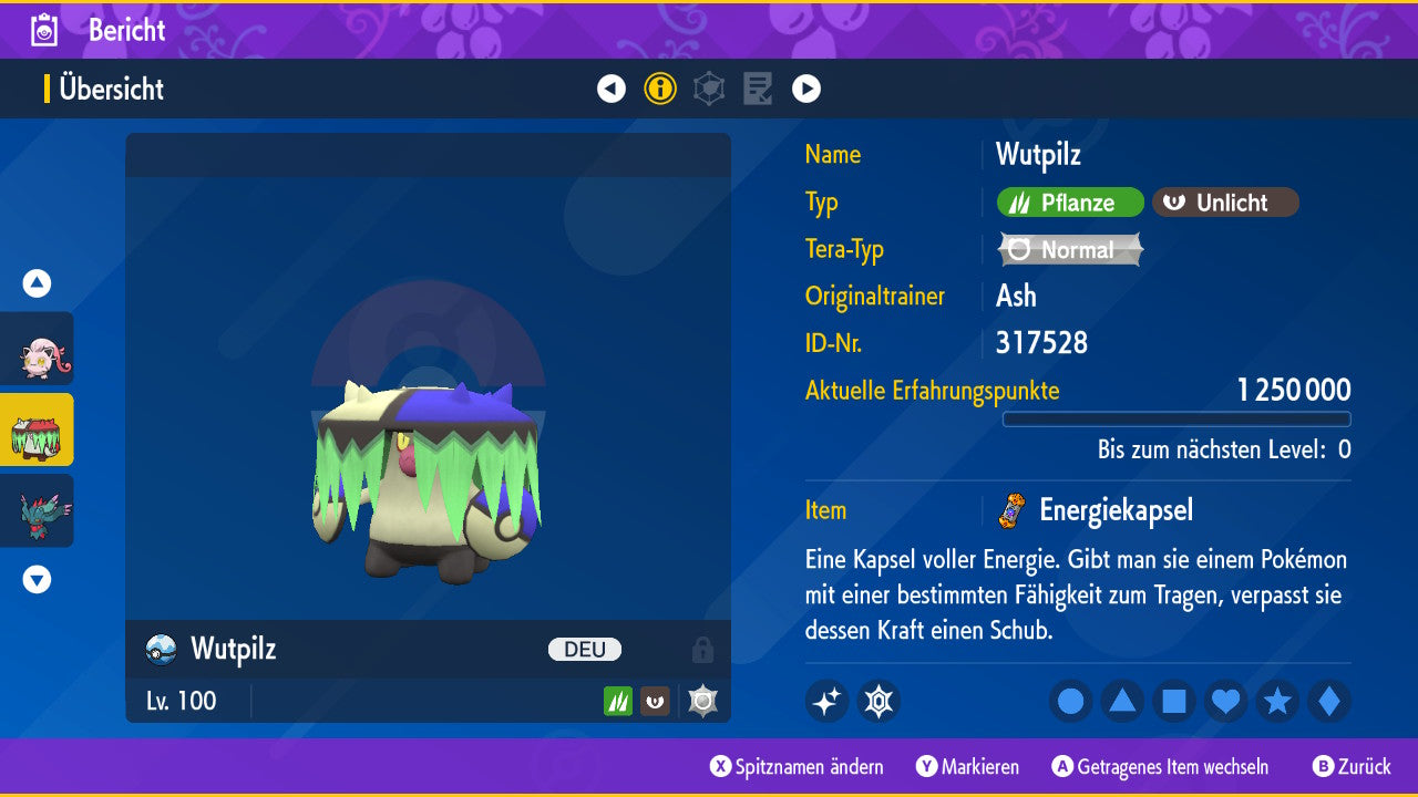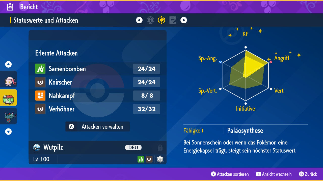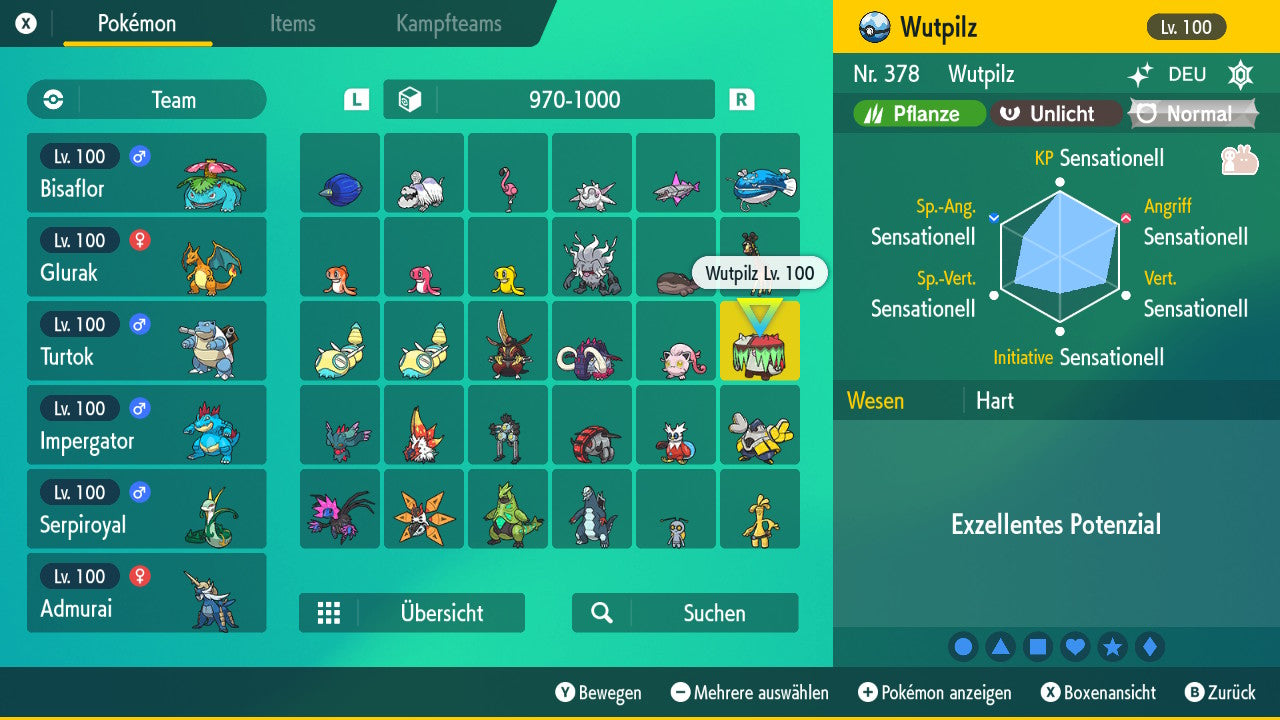 The Pokemon is equipped with impressive 6x31 IV values. This means that it has the maximum 31 IV/DV points for all six values (HP, Atk, Sp-Atk, Def, Sp-Def, Init). Your Pokemon therefore starts digital battles with outstanding strength.