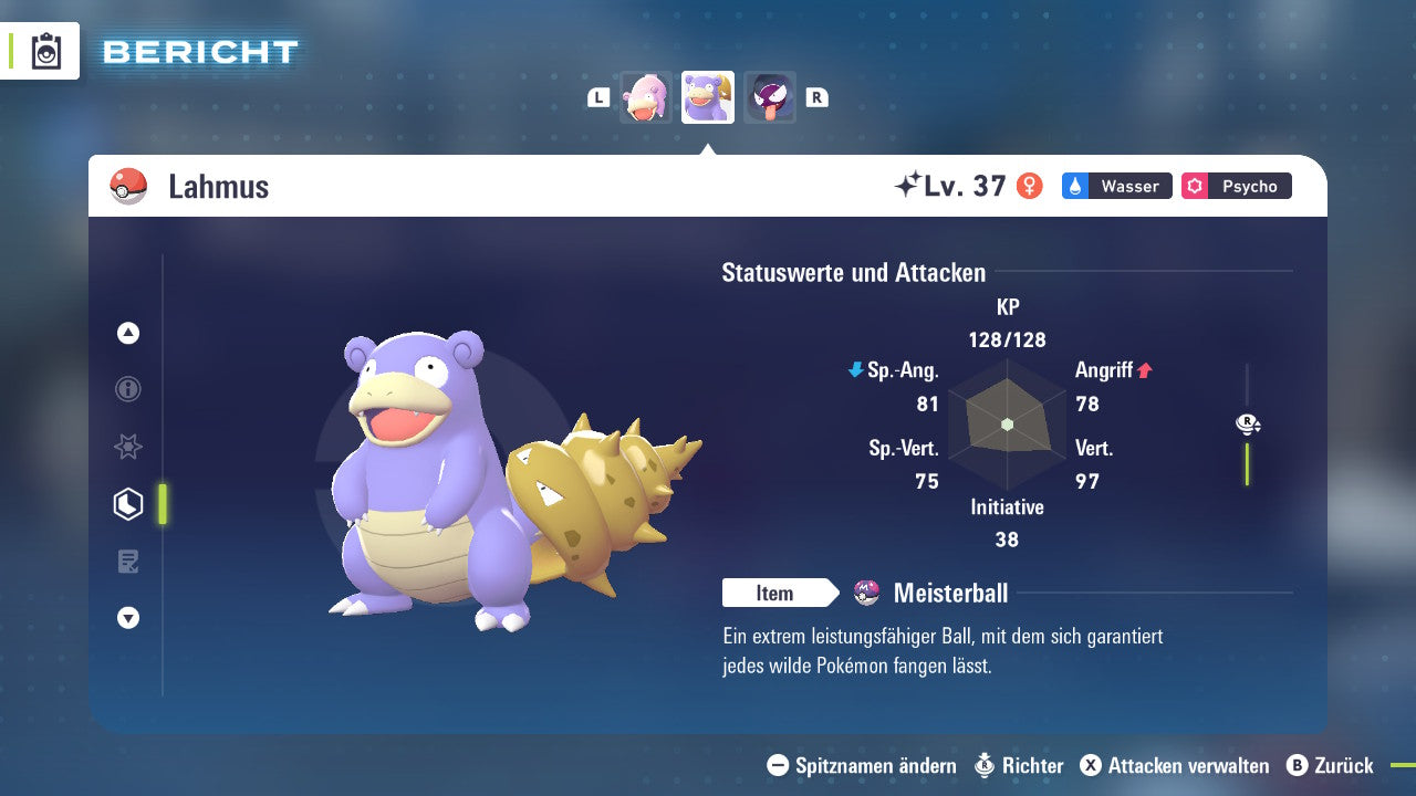 Das Pokemon ist mit beeindruckenden 6×31 IV-Werten ausgestattet. Das bedeutet, dass es auf allen sechs Werten (KP, Ang., Sp-Ang., Vert., Sp-Vert., Init.) die maximalen 31 IV/DV-Punkte besitzt. Dein Pokemon startet somit mit herausragender Stärke in digitale Kämpfe.