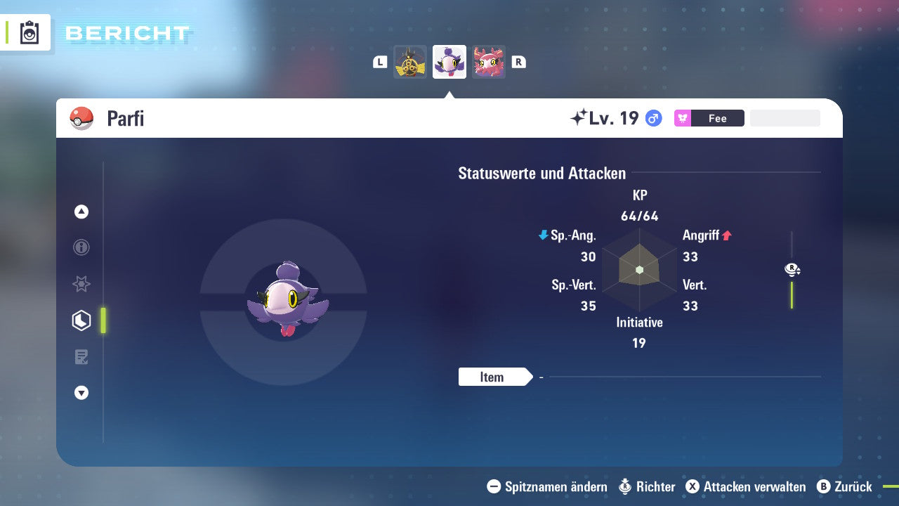 Das Pokemon ist mit beeindruckenden 6×31 IV-Werten ausgestattet. Das bedeutet, dass es auf allen sechs Werten (KP, Ang., Sp-Ang., Vert., Sp-Vert., Init.) die maximalen 31 IV/DV-Punkte besitzt. Dein Pokemon startet somit mit herausragender Stärke in digitale Kämpfe.