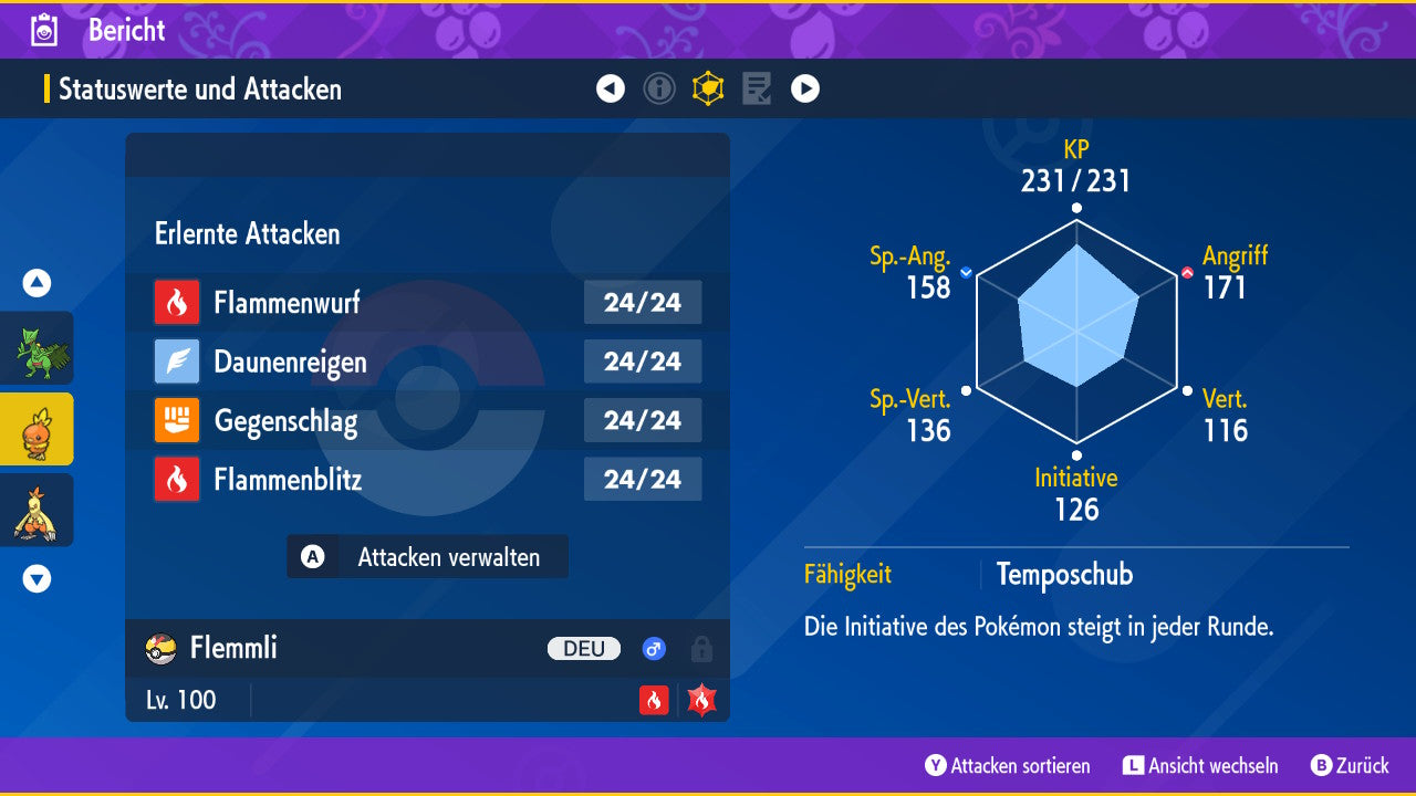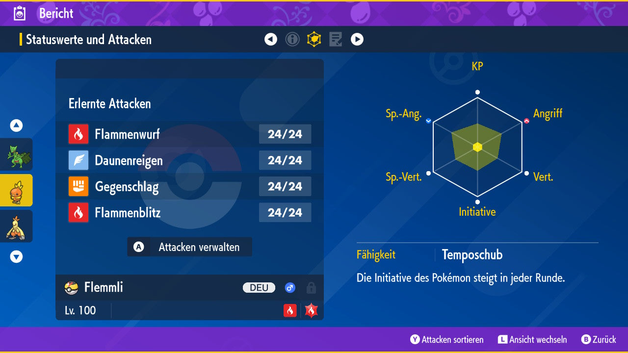Le Pokémon est livré avec des statistiques impressionnantes de 6 × 31 IV. Cela signifie qu'il a le maximum de 31 points IV/DV sur les six statistiques (HP, Atk., Sp-Att., Vert., Sp-Vert., Init.). Votre Pokémon lancera des batailles numériques avec une force exceptionnelle.