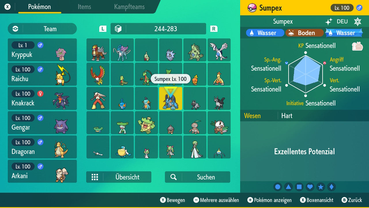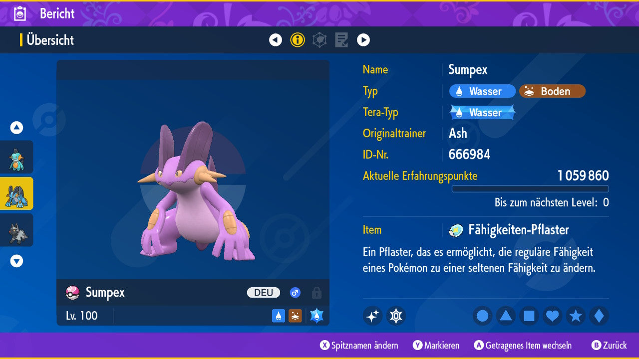Tous les Pokémon sont également au niveau 100, ce qui signifie qu'ils ont déjà atteint le niveau maximum. Vous pouvez les utiliser immédiatement dans votre équipe numérique sans avoir à passer de niveau ou à vous entraîner.