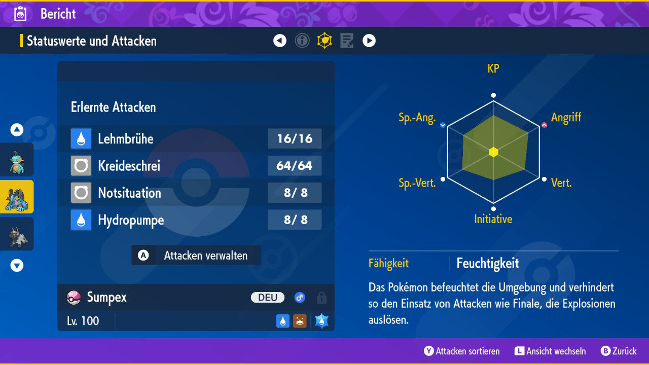 Le Pokémon est livré avec des statistiques impressionnantes de 6 × 31 IV. Cela signifie qu'il a le maximum de 31 points IV/DV sur les six statistiques (HP, Atk., Sp-Att., Vert., Sp-Vert., Init.). Votre Pokémon lancera des batailles numériques avec une force exceptionnelle.