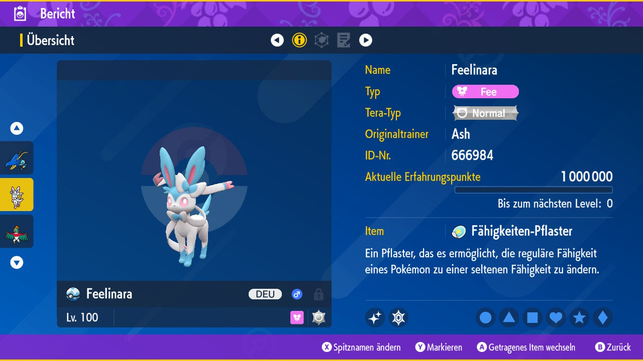 Tous les Pokémon sont également au niveau 100, ce qui signifie qu'ils ont déjà atteint le niveau maximum. Vous pouvez les utiliser immédiatement dans votre équipe numérique sans avoir à passer de niveau ou à vous entraîner.