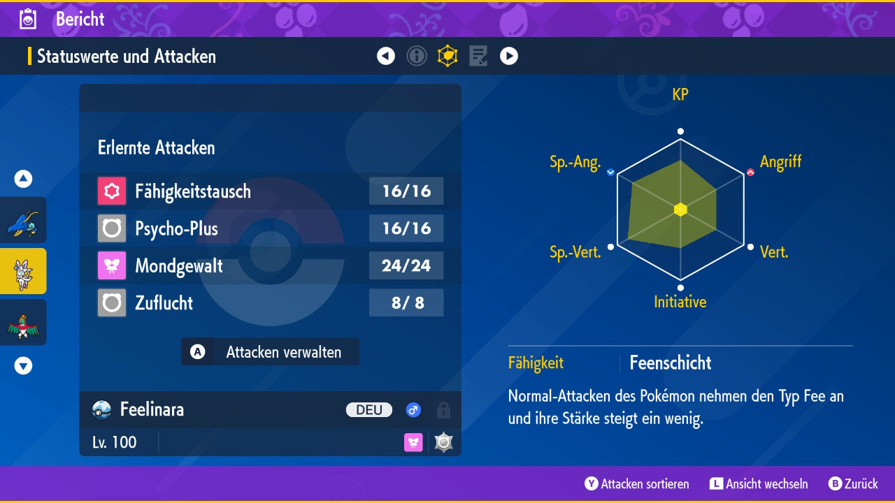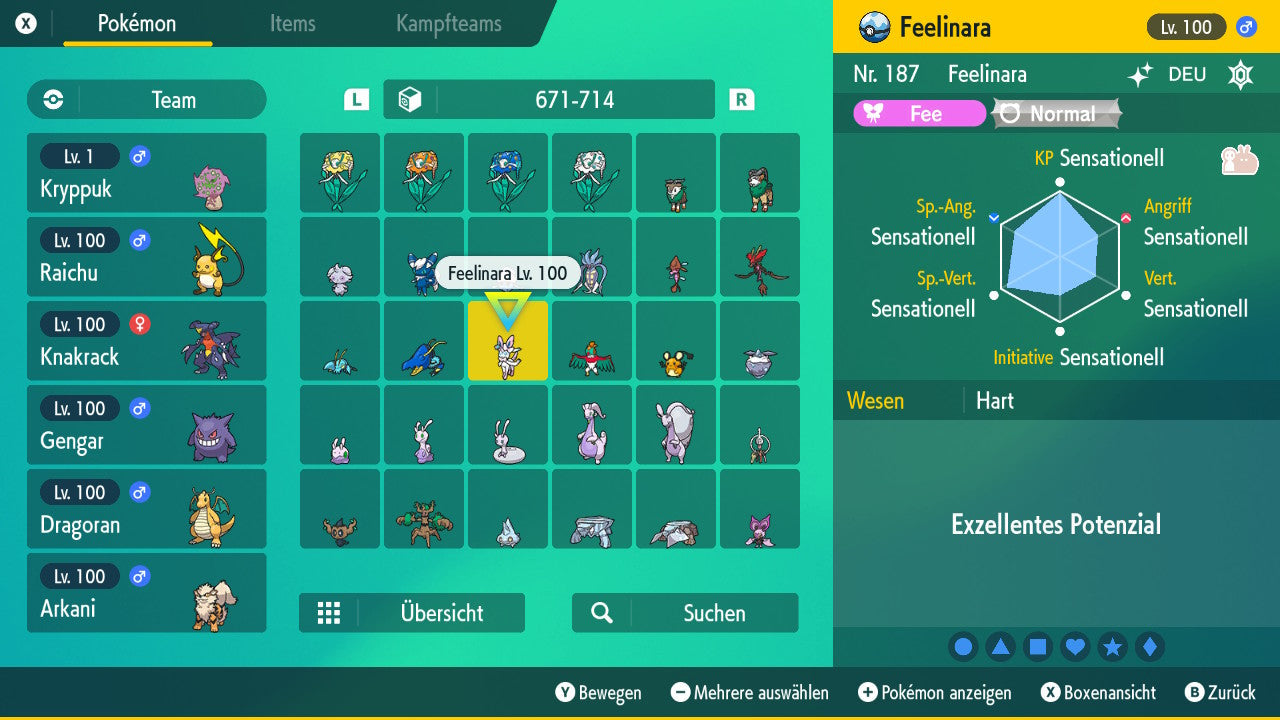 Le Pokémon est livré avec des statistiques impressionnantes de 6 × 31 IV. Cela signifie qu'il a le maximum de 31 points IV/DV sur les six statistiques (HP, Atk., Sp-Att., Vert., Sp-Vert., Init.). Votre Pokémon lancera des batailles numériques avec une force exceptionnelle.