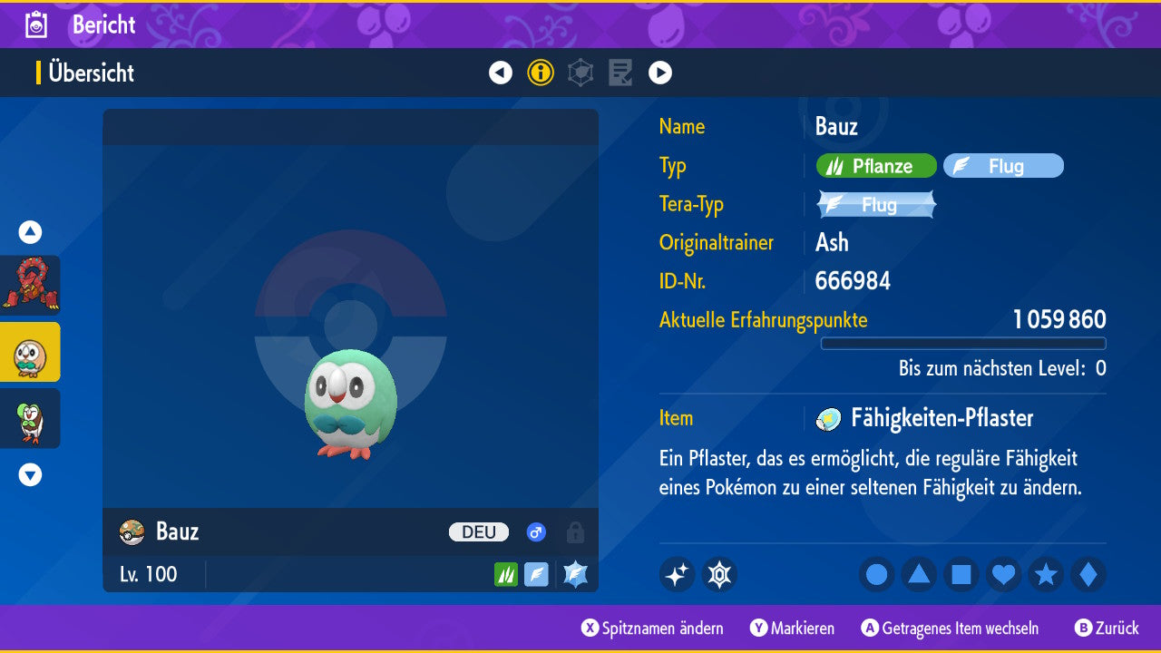 Tous les Pokémon sont également au niveau 100, ce qui signifie qu'ils ont déjà atteint le niveau maximum. Vous pouvez les utiliser immédiatement dans votre équipe numérique sans avoir à passer de niveau ou à vous entraîner.