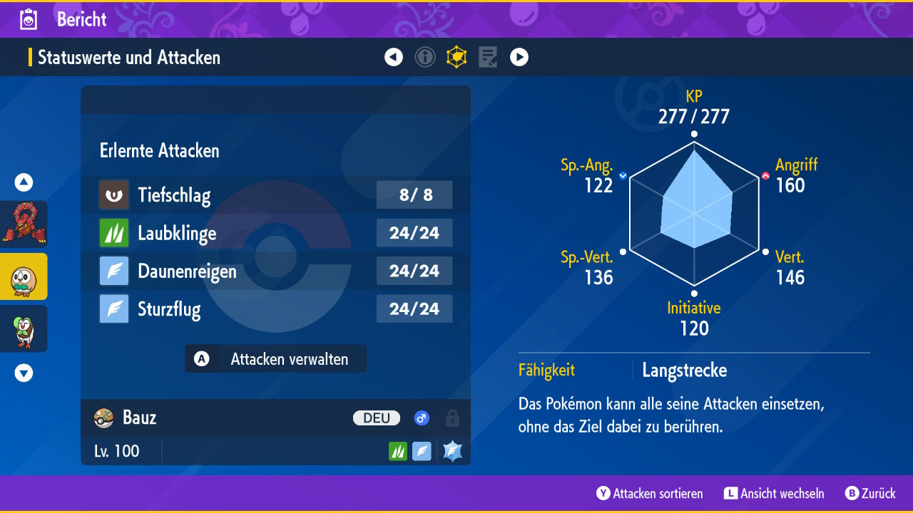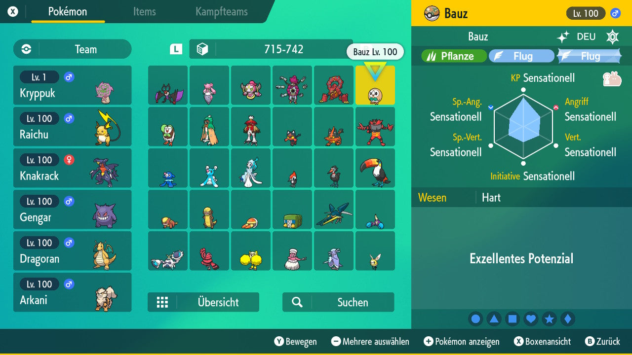 Le Pokémon est livré avec des statistiques impressionnantes de 6 × 31 IV. Cela signifie qu'il a le maximum de 31 points IV/DV sur les six statistiques (HP, Atk., Sp-Att., Vert., Sp-Vert., Init.). Votre Pokémon lancera des batailles numériques avec une force exceptionnelle.