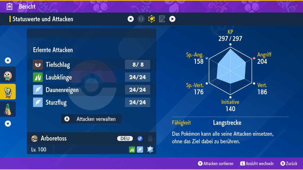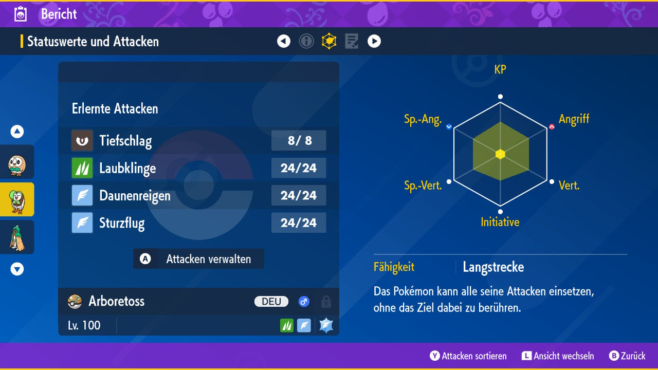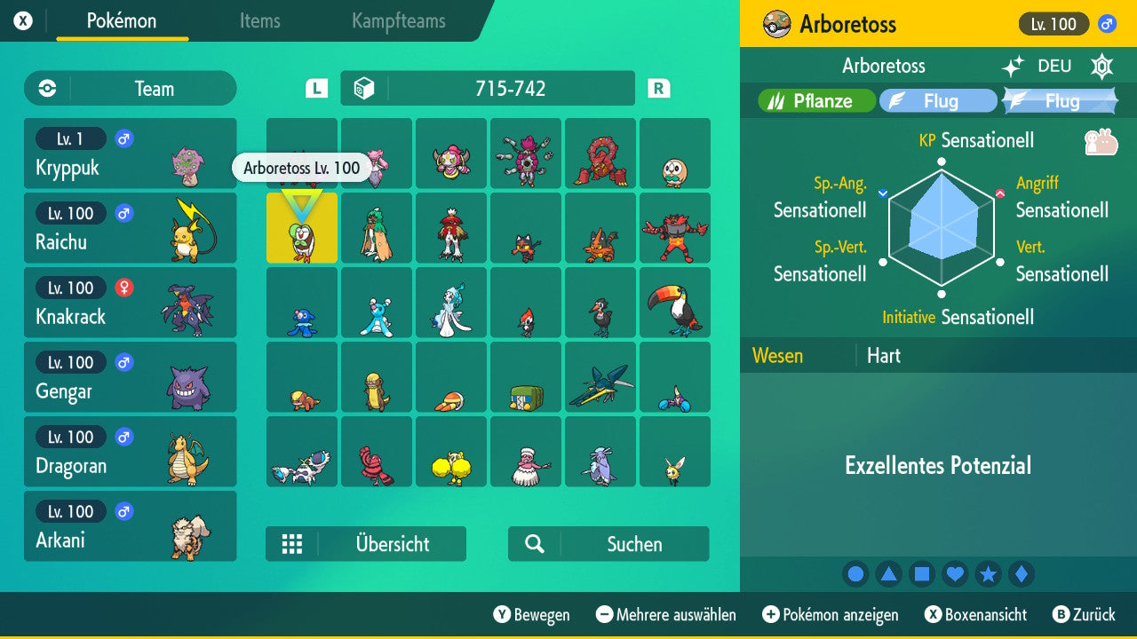 Le Pokémon est livré avec des statistiques impressionnantes de 6 × 31 IV. Cela signifie qu'il a le maximum de 31 points IV/DV sur les six statistiques (HP, Atk., Sp-Att., Vert., Sp-Vert., Init.). Votre Pokémon lancera des batailles numériques avec une force exceptionnelle.