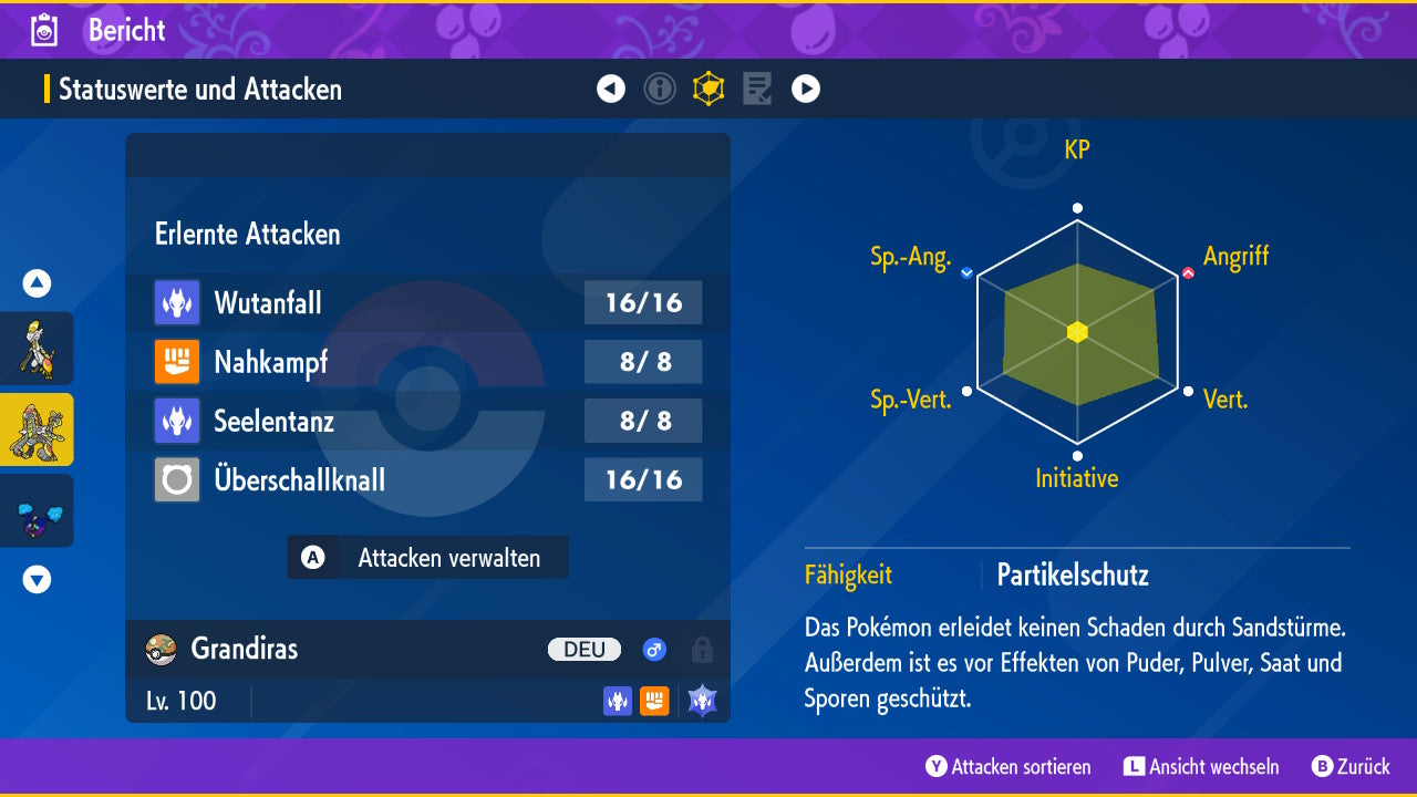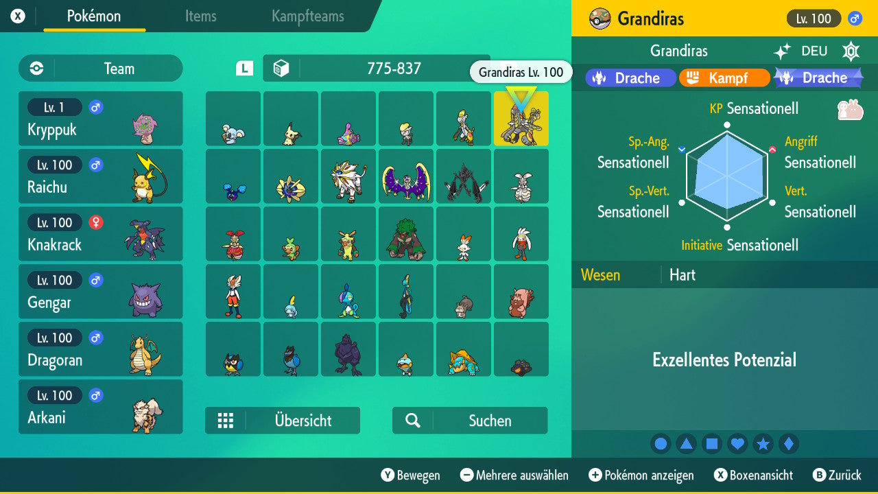 Le Pokémon est livré avec des statistiques impressionnantes de 6 × 31 IV. Cela signifie qu'il a le maximum de 31 points IV/DV sur les six statistiques (HP, Atk., Sp-Att., Vert., Sp-Vert., Init.). Votre Pokémon lancera des batailles numériques avec une force exceptionnelle.