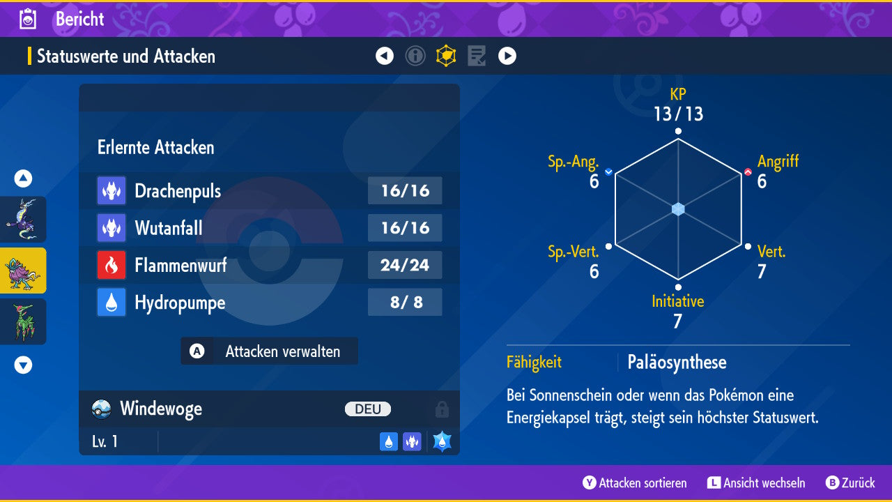Le Pokémon est livré avec des statistiques impressionnantes de 6 × 31 IV. Cela signifie qu'il a le maximum de 31 points IV/DV sur les six statistiques (HP, Atk., Sp-Att., Vert., Sp-Vert., Init.). Votre Pokémon lancera des batailles numériques avec une force exceptionnelle.