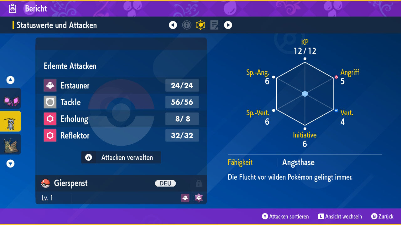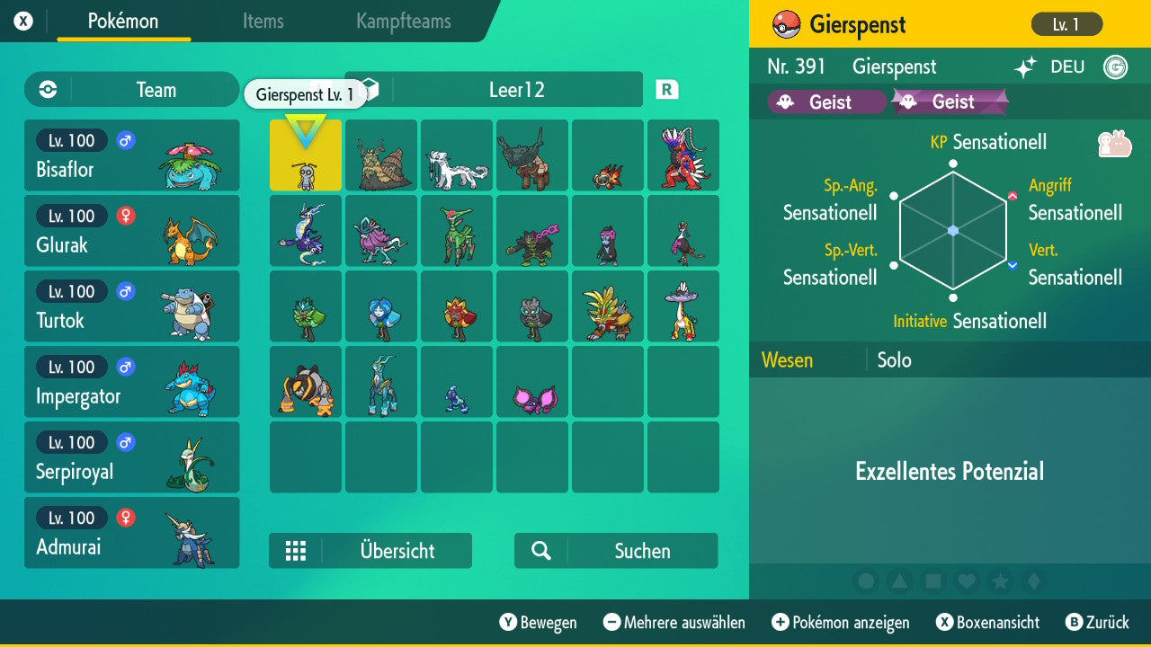 Le Pokémon est livré avec des statistiques impressionnantes de 6 × 31 IV. Cela signifie qu'il a le maximum de 31 points IV/DV sur les six statistiques (HP, Atk., Sp-Att., Vert., Sp-Vert., Init.). Votre Pokémon lancera des batailles numériques avec une force exceptionnelle.