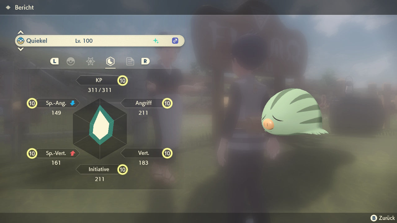 Le Pokémon est livré avec des statistiques impressionnantes de 6 × 31 IV. Cela signifie qu'il a le maximum de 31 points IV/DV sur les six statistiques (HP, Atk., Sp-Att., Vert., Sp-Vert., Init.). Votre Pokémon lancera des batailles numériques avec une force exceptionnelle.