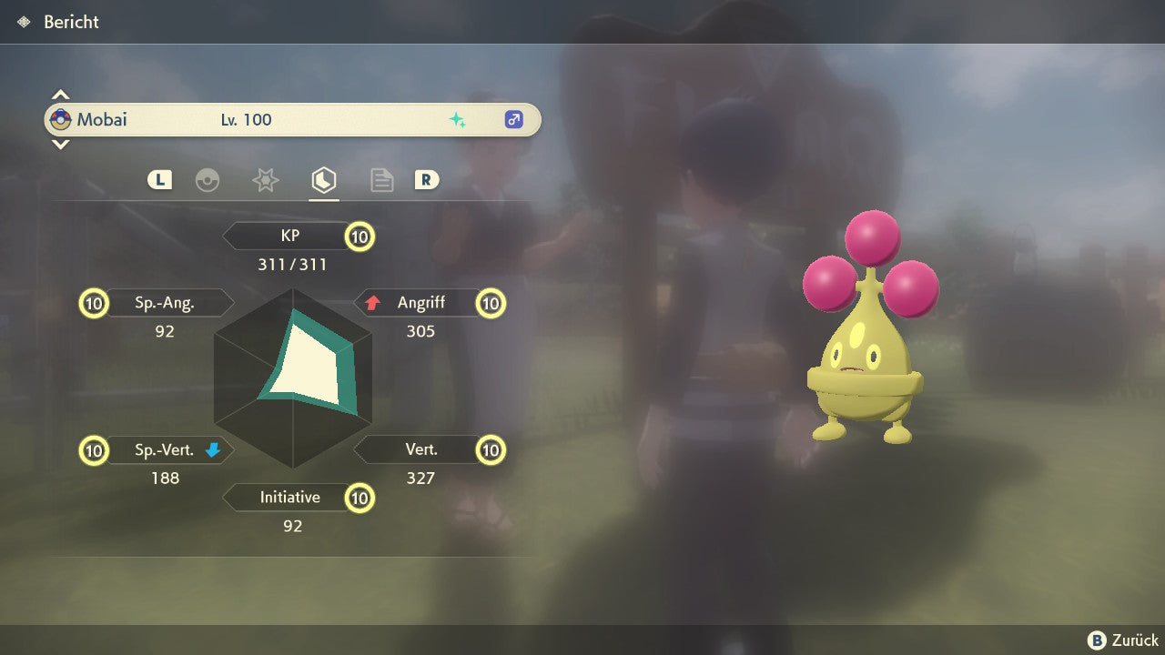 Le Pokémon est livré avec des statistiques impressionnantes de 6 × 31 IV. Cela signifie qu'il a le maximum de 31 points IV/DV sur les six statistiques (HP, Atk., Sp-Att., Vert., Sp-Vert., Init.). Votre Pokémon lancera des batailles numériques avec une force exceptionnelle.