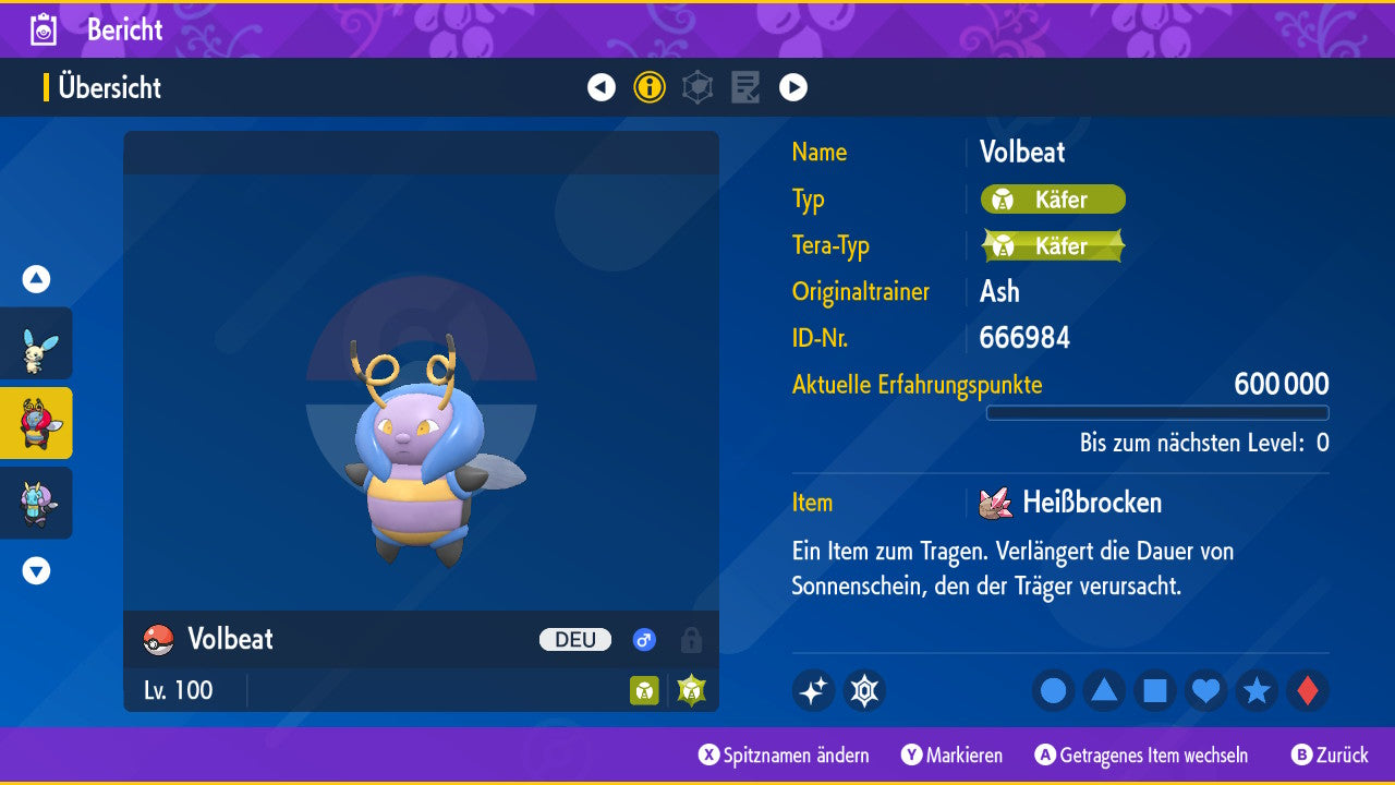 Tous les Pokémon sont également au niveau 100, ce qui signifie qu'ils ont déjà atteint le niveau maximum. Vous pouvez les utiliser immédiatement dans votre équipe numérique sans avoir à passer de niveau ou à vous entraîner.