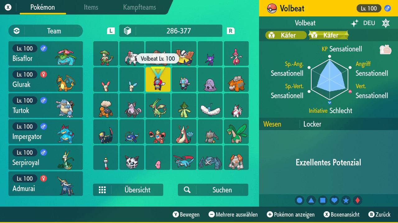 Le Pokémon est livré avec des statistiques impressionnantes de 6 × 31 IV. Cela signifie qu'il a le maximum de 31 points IV/DV sur les six statistiques (HP, Atk., Sp-Att., Vert., Sp-Vert., Init.). Votre Pokémon lancera des batailles numériques avec une force exceptionnelle.