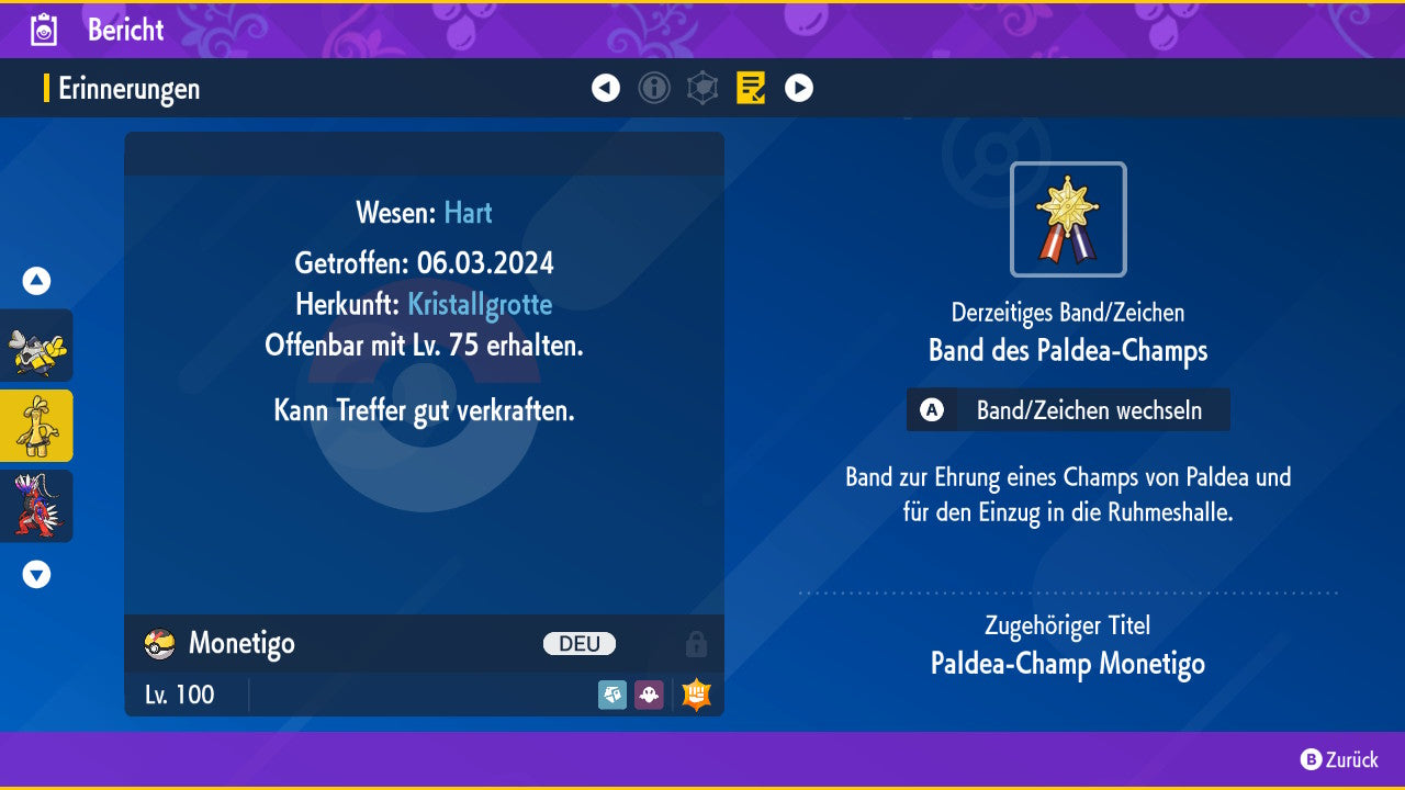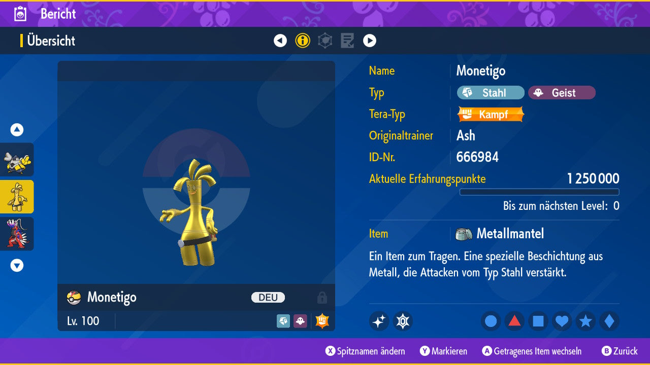 Tous les Pokémon sont également au niveau 100, ce qui signifie qu'ils ont déjà atteint le niveau maximum. Vous pouvez les utiliser immédiatement dans votre équipe numérique sans avoir à passer de niveau ou à vous entraîner.