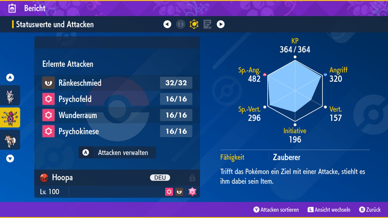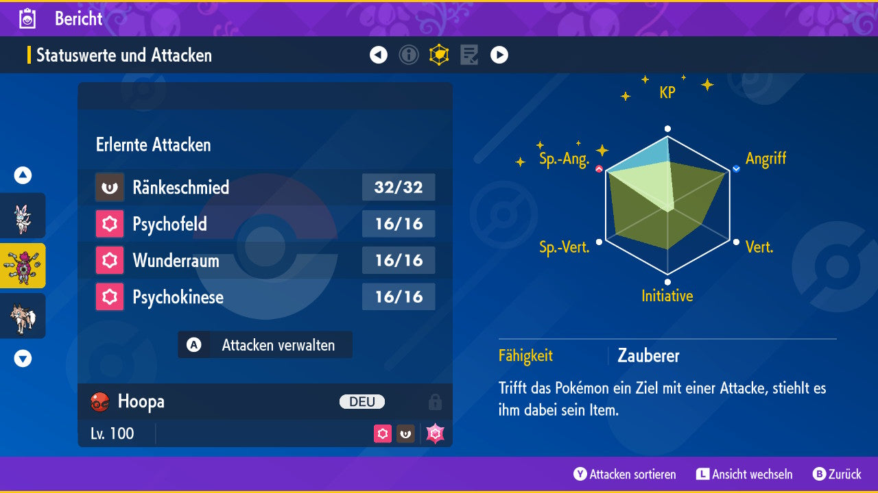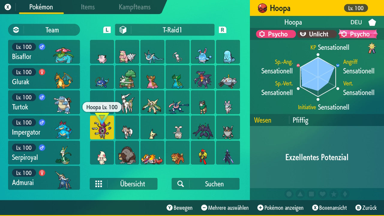 Le Pokémon est livré avec des statistiques impressionnantes de 6 × 31 IV. Cela signifie qu'il a le maximum de 31 points IV/DV sur les six statistiques (HP, Atk., Sp-Att., Vert., Sp-Vert., Init.). Votre Pokémon lancera des batailles numériques avec une force exceptionnelle.
