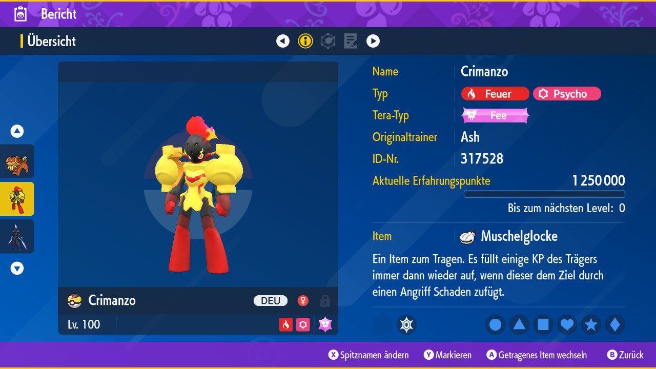 Tous les Pokémon sont également au niveau 100, ce qui signifie qu'ils ont déjà atteint le niveau maximum. Vous pouvez les utiliser immédiatement dans votre équipe numérique sans avoir à passer de niveau ou à vous entraîner.