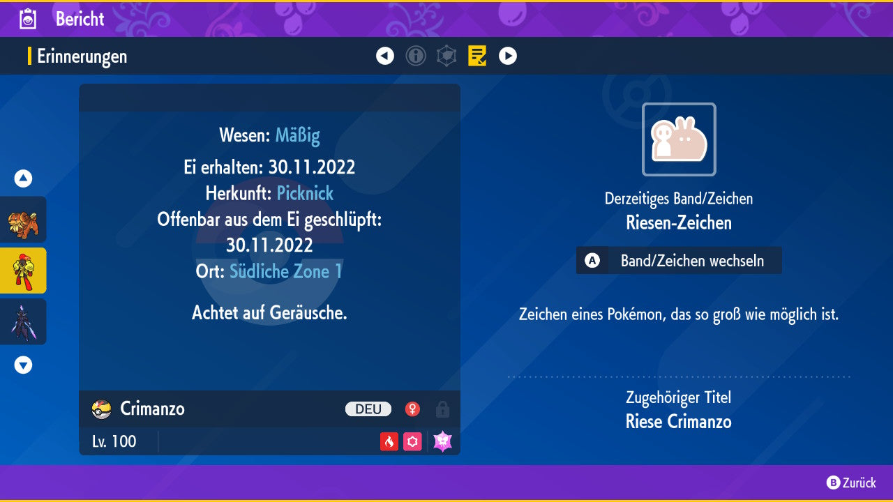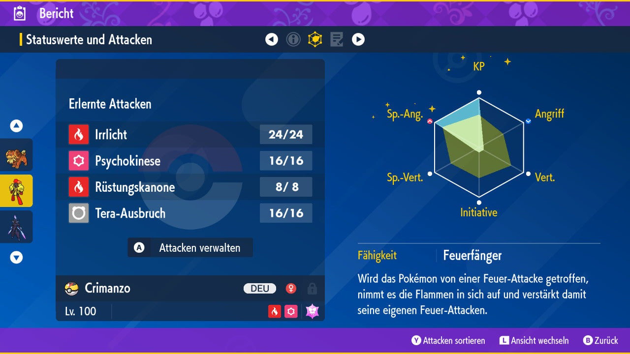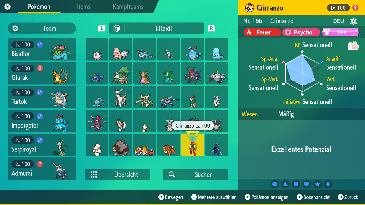 Le Pokémon est livré avec des statistiques impressionnantes de 6 × 31 IV. Cela signifie qu'il a le maximum de 31 points IV/DV sur les six statistiques (HP, Atk., Sp-Att., Vert., Sp-Vert., Init.). Votre Pokémon lancera des batailles numériques avec une force exceptionnelle.