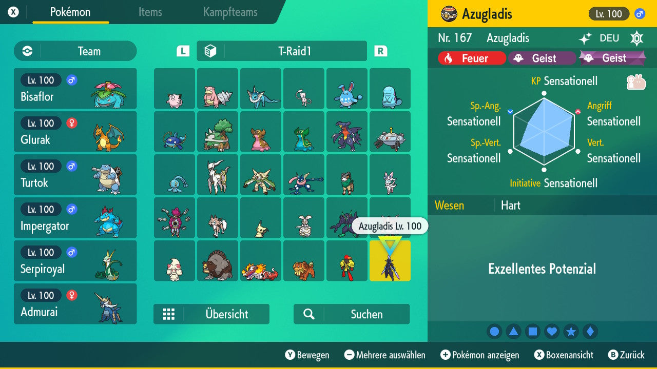 Le Pokémon est livré avec des statistiques impressionnantes de 6 × 31 IV. Cela signifie qu'il a le maximum de 31 points IV/DV sur les six statistiques (HP, Atk., Sp-Att., Vert., Sp-Vert., Init.). Votre Pokémon lancera des batailles numériques avec une force exceptionnelle.