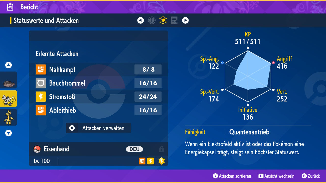 - EV (valeurs d'effort) : KP+Atk./Sp.Atk. Maximisé, 510.