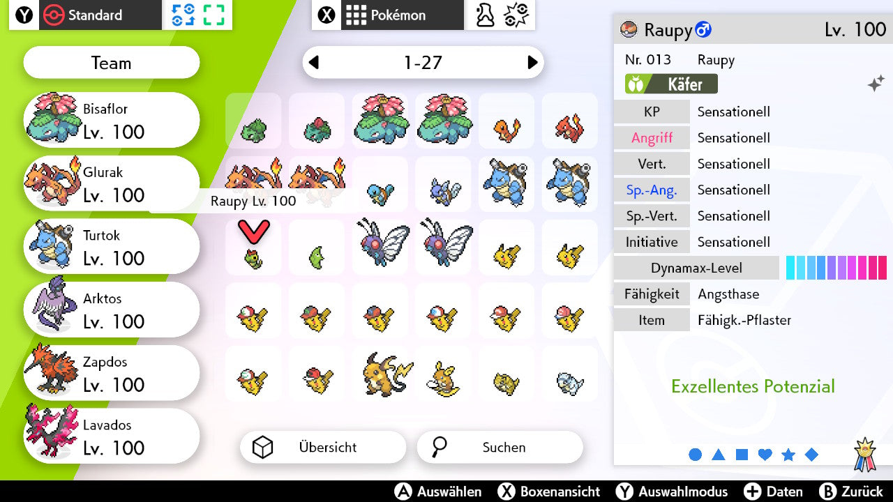 Le Pokémon est livré avec des statistiques impressionnantes de 6 × 31 IV. Cela signifie qu'il a le maximum de 31 points IV/DV sur les six statistiques (HP, Atk., Sp-Att., Vert., Sp-Vert., Init.). Votre Pokémon lancera des batailles numériques avec une force exceptionnelle.