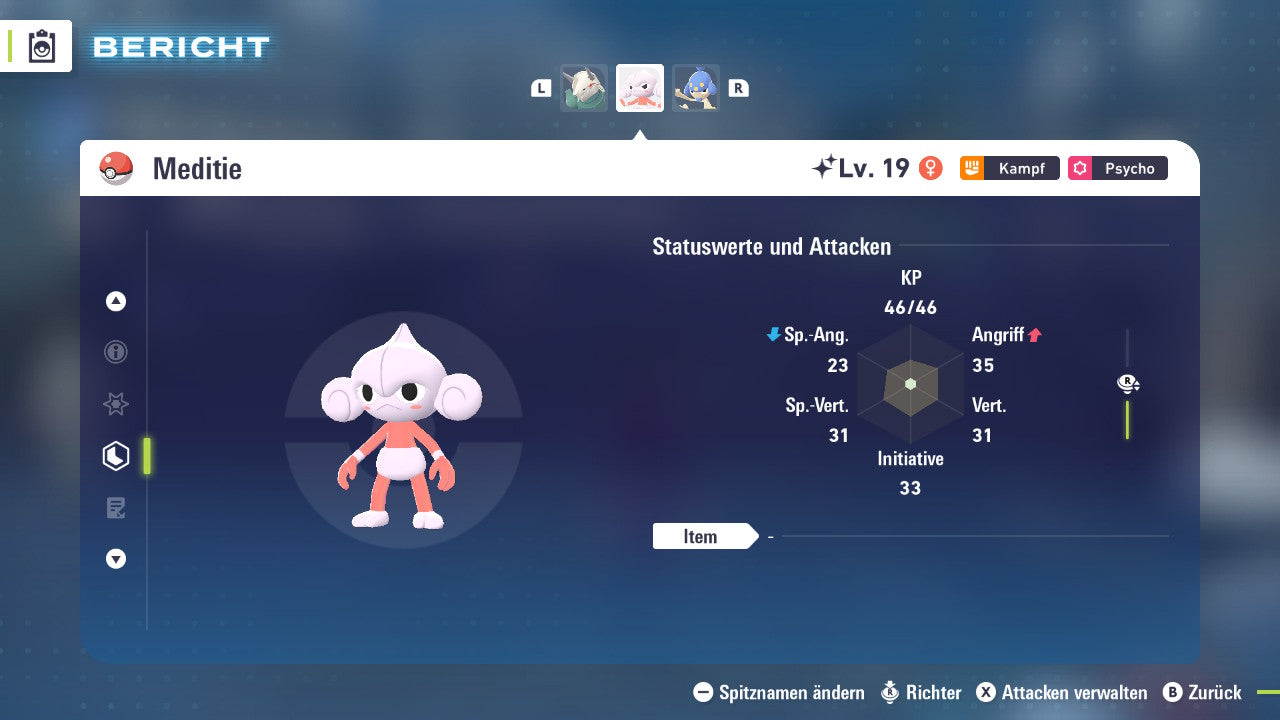Das Pokemon ist mit beeindruckenden 6×31 IV-Werten ausgestattet. Das bedeutet, dass es auf allen sechs Werten (KP, Ang., Sp-Ang., Vert., Sp-Vert., Init.) die maximalen 31 IV/DV-Punkte besitzt. Dein Pokemon startet somit mit herausragender Stärke in digitale Kämpfe.