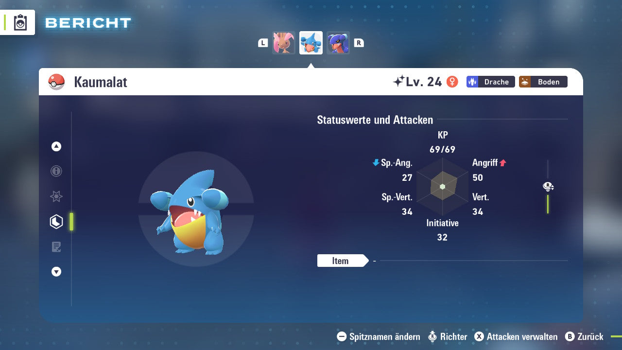 Das Pokemon ist mit beeindruckenden 6×31 IV-Werten ausgestattet. Das bedeutet, dass es auf allen sechs Werten (KP, Ang., Sp-Ang., Vert., Sp-Vert., Init.) die maximalen 31 IV/DV-Punkte besitzt. Dein Pokemon startet somit mit herausragender Stärke in digitale Kämpfe.