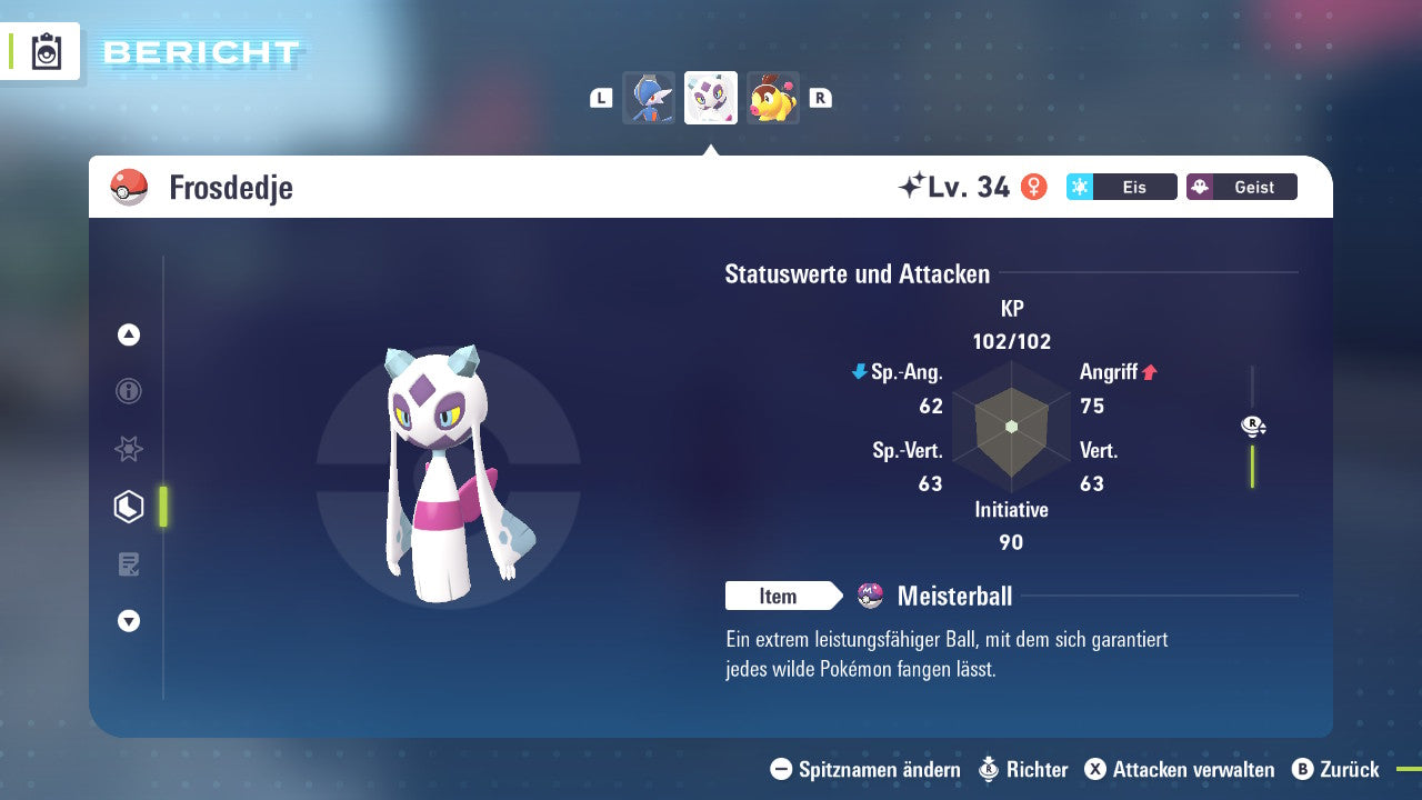Das Pokemon ist mit beeindruckenden 6×31 IV-Werten ausgestattet. Das bedeutet, dass es auf allen sechs Werten (KP, Ang., Sp-Ang., Vert., Sp-Vert., Init.) die maximalen 31 IV/DV-Punkte besitzt. Dein Pokemon startet somit mit herausragender Stärke in digitale Kämpfe.