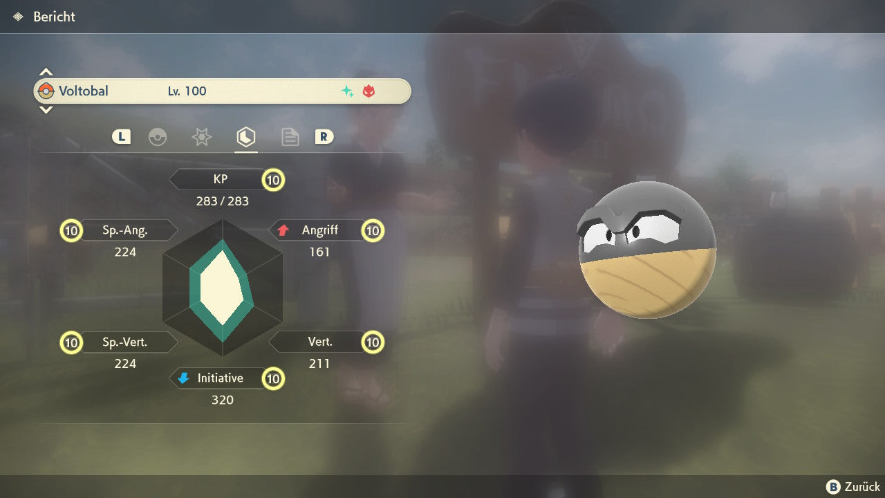 Das Pokemon ist mit beeindruckenden 6×31 IV-Werten ausgestattet. Das bedeutet, dass es auf allen sechs Werten (KP, Ang., Sp-Ang., Vert., Sp-Vert., Init.) die maximalen 31 IV/DV-Punkte besitzt. Dein Pokemon startet somit mit herausragender Stärke in digitale Kämpfe.