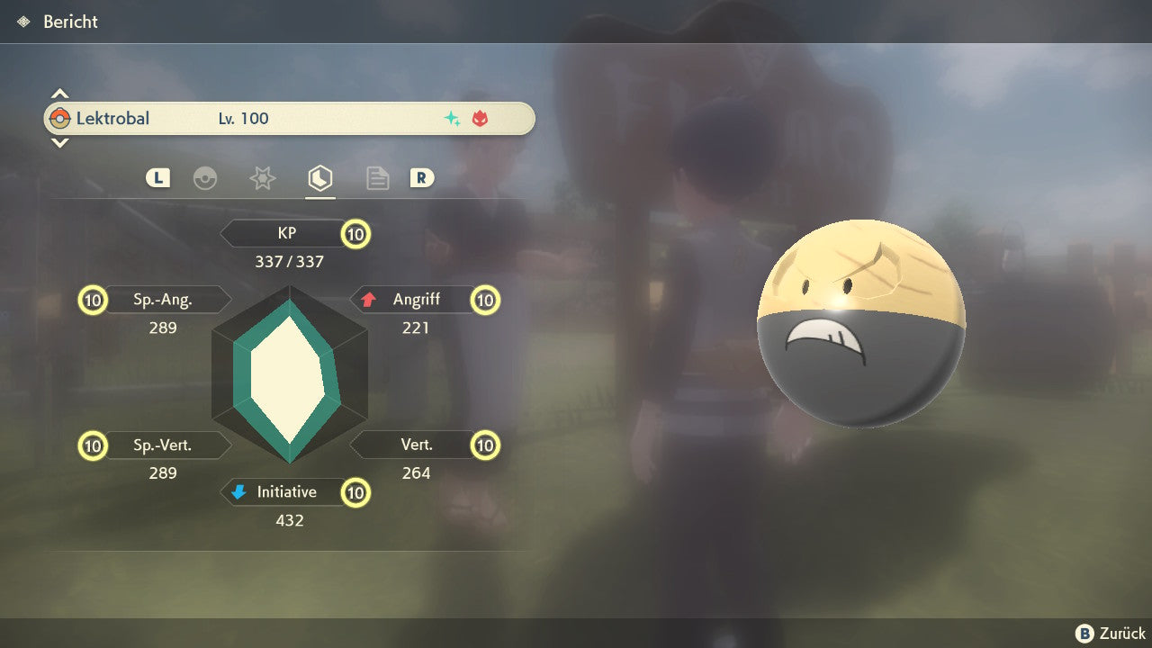 Das Pokemon ist mit beeindruckenden 6×31 IV-Werten ausgestattet. Das bedeutet, dass es auf allen sechs Werten (KP, Ang., Sp-Ang., Vert., Sp-Vert., Init.) die maximalen 31 IV/DV-Punkte besitzt. Dein Pokemon startet somit mit herausragender Stärke in digitale Kämpfe.