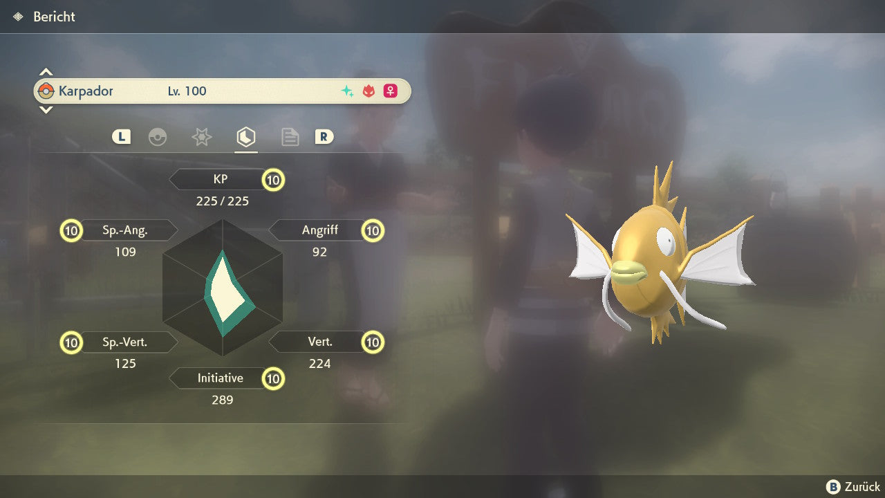 Das Pokemon ist mit beeindruckenden 6×31 IV-Werten ausgestattet. Das bedeutet, dass es auf allen sechs Werten (KP, Ang., Sp-Ang., Vert., Sp-Vert., Init.) die maximalen 31 IV/DV-Punkte besitzt. Dein Pokemon startet somit mit herausragender Stärke in digitale Kämpfe.