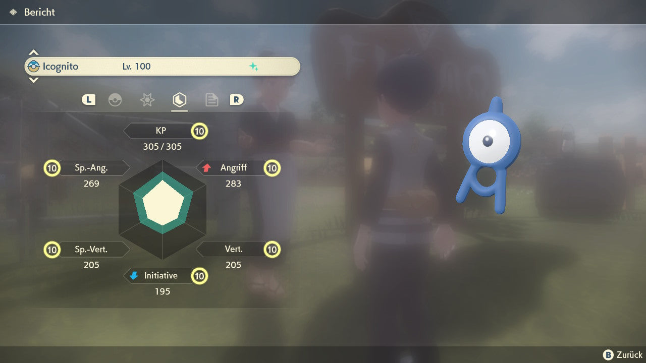Das Pokemon ist mit beeindruckenden 6×31 IV-Werten ausgestattet. Das bedeutet, dass es auf allen sechs Werten (KP, Ang., Sp-Ang., Vert., Sp-Vert., Init.) die maximalen 31 IV/DV-Punkte besitzt. Dein Pokemon startet somit mit herausragender Stärke in digitale Kämpfe.