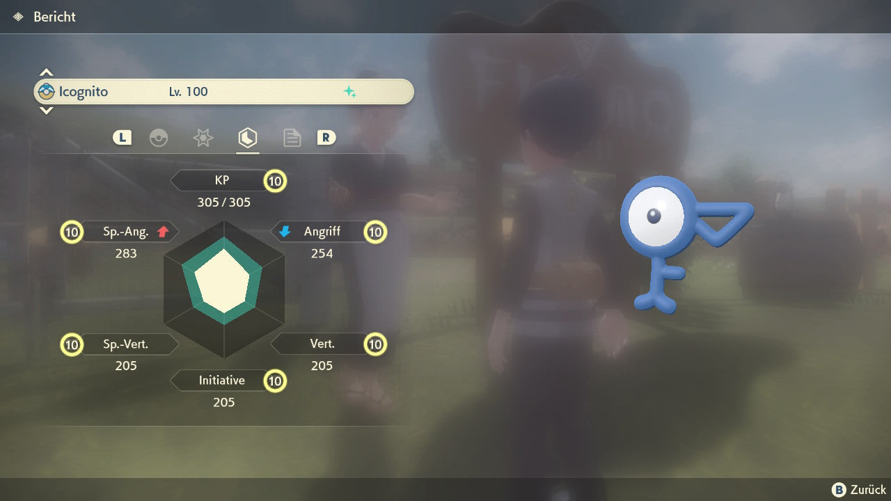 Das Pokemon ist mit beeindruckenden 6×31 IV-Werten ausgestattet. Das bedeutet, dass es auf allen sechs Werten (KP, Ang., Sp-Ang., Vert., Sp-Vert., Init.) die maximalen 31 IV/DV-Punkte besitzt. Dein Pokemon startet somit mit herausragender Stärke in digitale Kämpfe.