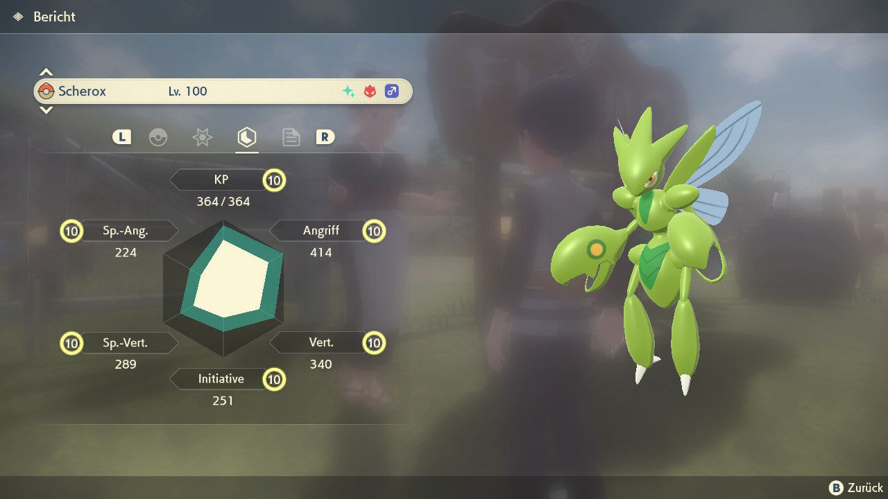 Das Pokemon ist mit beeindruckenden 6×31 IV-Werten ausgestattet. Das bedeutet, dass es auf allen sechs Werten (KP, Ang., Sp-Ang., Vert., Sp-Vert., Init.) die maximalen 31 IV/DV-Punkte besitzt. Dein Pokemon startet somit mit herausragender Stärke in digitale Kämpfe.
