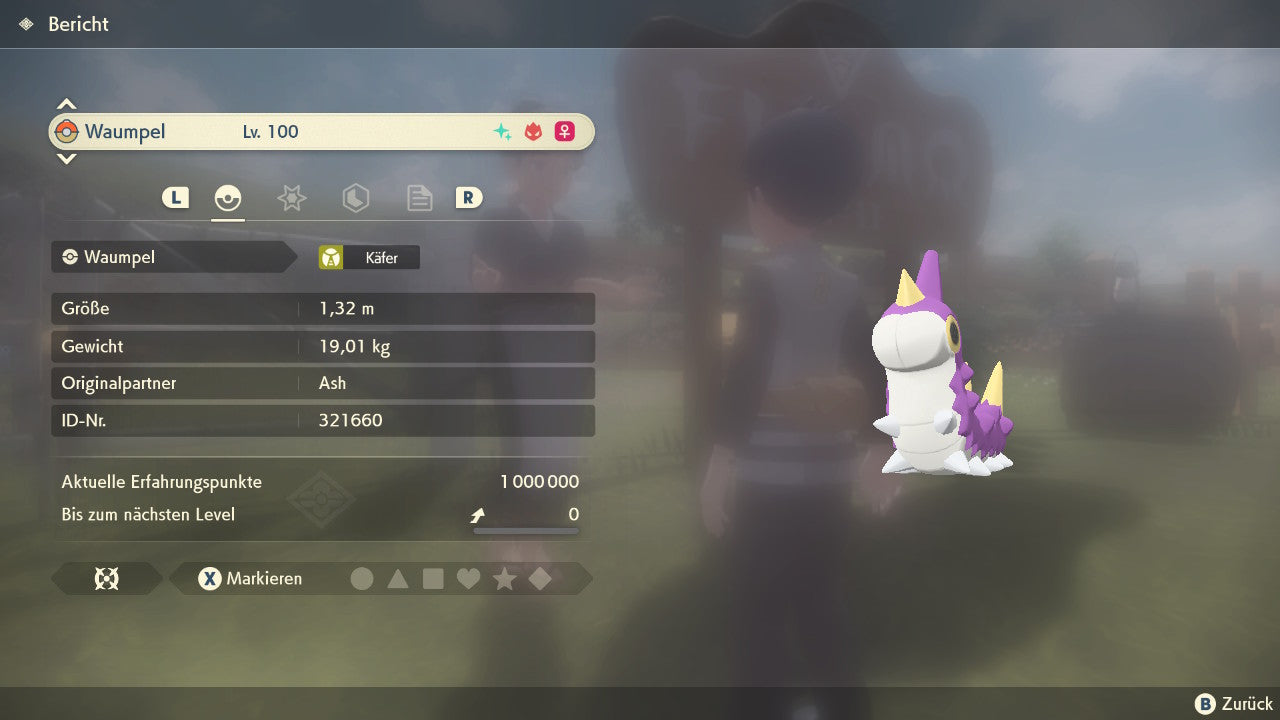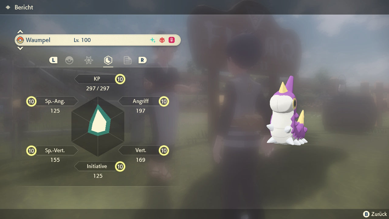Das Pokemon ist mit beeindruckenden 6×31 IV-Werten ausgestattet. Das bedeutet, dass es auf allen sechs Werten (KP, Ang., Sp-Ang., Vert., Sp-Vert., Init.) die maximalen 31 IV/DV-Punkte besitzt. Dein Pokemon startet somit mit herausragender Stärke in digitale Kämpfe.