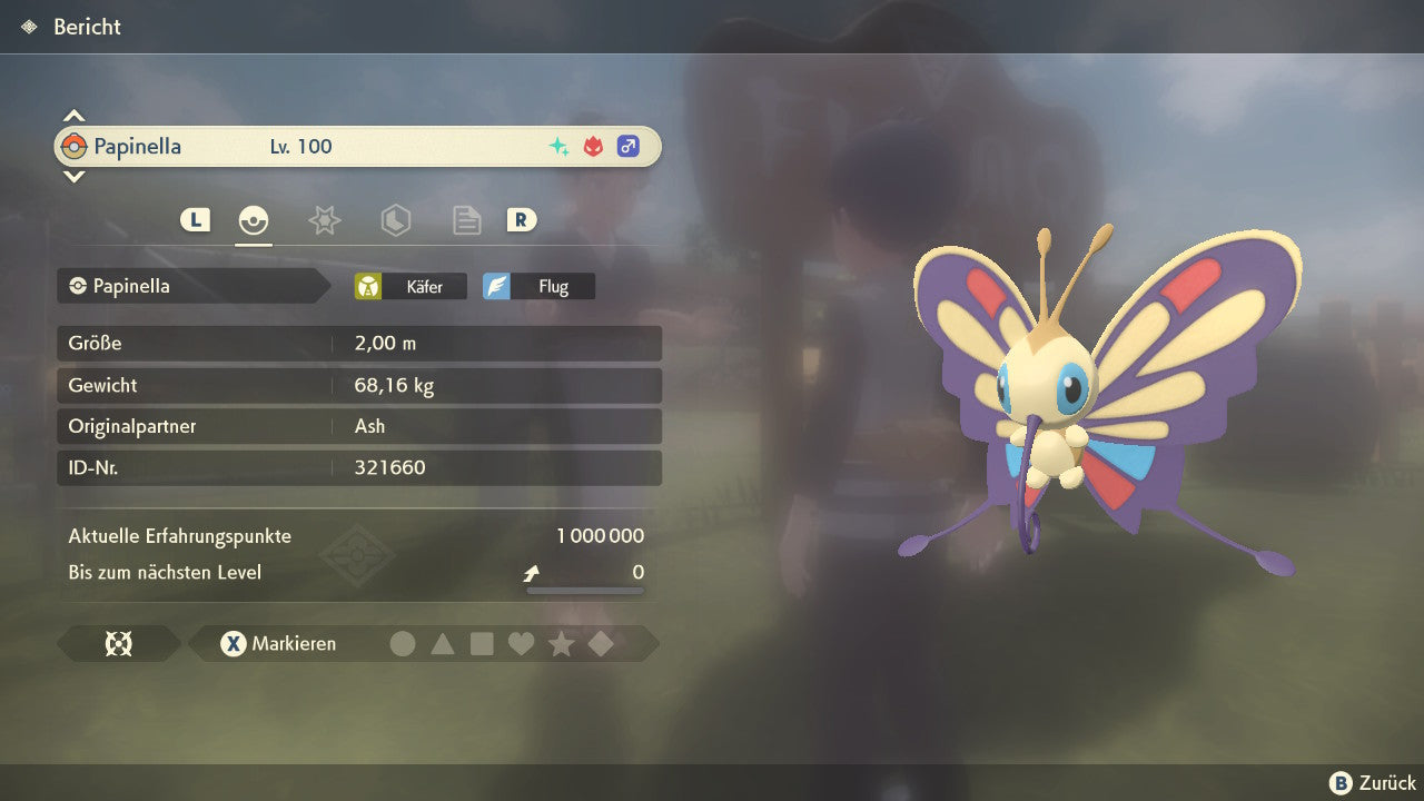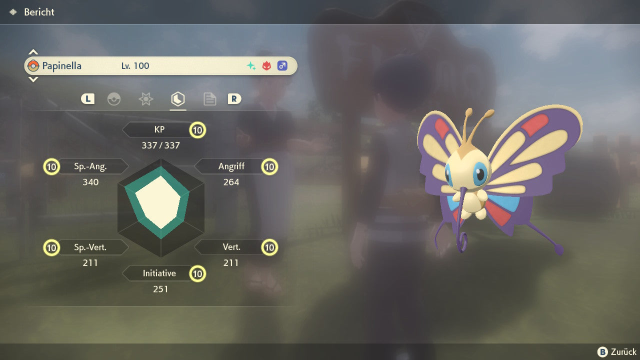 Das Pokemon ist mit beeindruckenden 6×31 IV-Werten ausgestattet. Das bedeutet, dass es auf allen sechs Werten (KP, Ang., Sp-Ang., Vert., Sp-Vert., Init.) die maximalen 31 IV/DV-Punkte besitzt. Dein Pokemon startet somit mit herausragender Stärke in digitale Kämpfe.