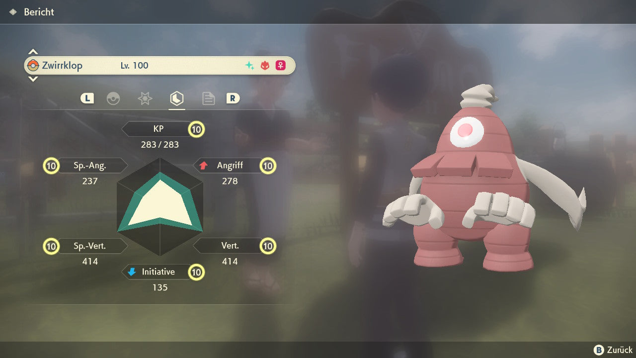 Das Pokemon ist mit beeindruckenden 6×31 IV-Werten ausgestattet. Das bedeutet, dass es auf allen sechs Werten (KP, Ang., Sp-Ang., Vert., Sp-Vert., Init.) die maximalen 31 IV/DV-Punkte besitzt. Dein Pokemon startet somit mit herausragender Stärke in digitale Kämpfe.
