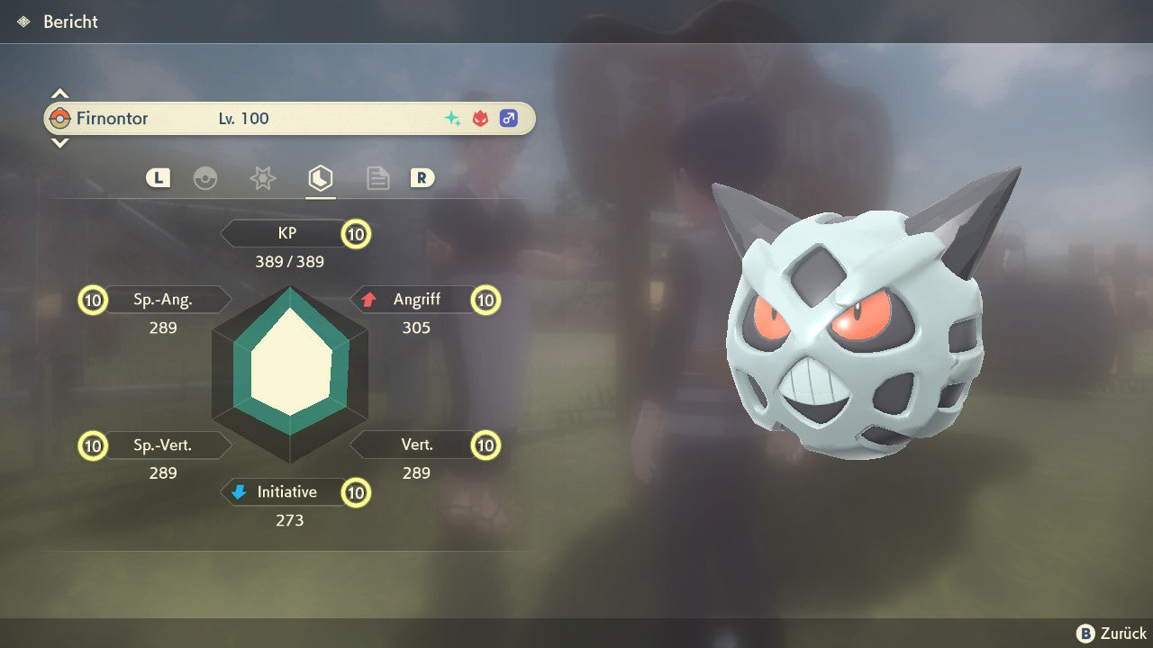 Das Pokemon ist mit beeindruckenden 6×31 IV-Werten ausgestattet. Das bedeutet, dass es auf allen sechs Werten (KP, Ang., Sp-Ang., Vert., Sp-Vert., Init.) die maximalen 31 IV/DV-Punkte besitzt. Dein Pokemon startet somit mit herausragender Stärke in digitale Kämpfe.