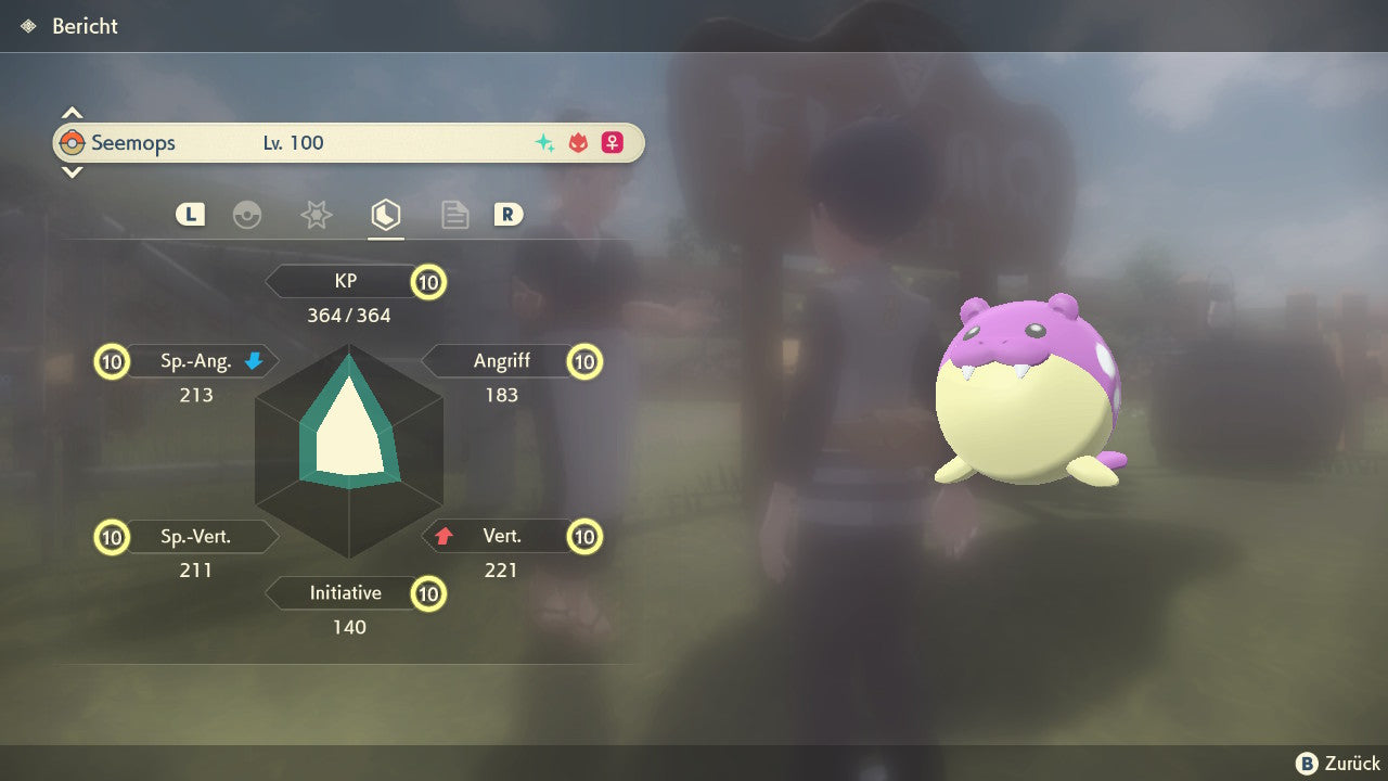 Das Pokemon ist mit beeindruckenden 6×31 IV-Werten ausgestattet. Das bedeutet, dass es auf allen sechs Werten (KP, Ang., Sp-Ang., Vert., Sp-Vert., Init.) die maximalen 31 IV/DV-Punkte besitzt. Dein Pokemon startet somit mit herausragender Stärke in digitale Kämpfe.