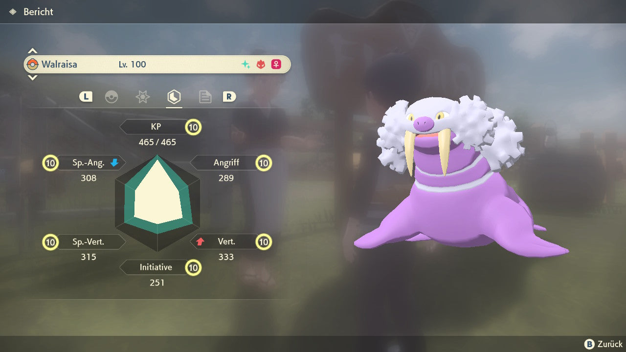 Das Pokemon ist mit beeindruckenden 6×31 IV-Werten ausgestattet. Das bedeutet, dass es auf allen sechs Werten (KP, Ang., Sp-Ang., Vert., Sp-Vert., Init.) die maximalen 31 IV/DV-Punkte besitzt. Dein Pokemon startet somit mit herausragender Stärke in digitale Kämpfe.