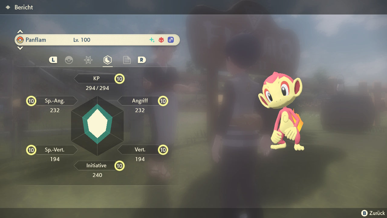 Das Pokemon ist mit beeindruckenden 6×31 IV-Werten ausgestattet. Das bedeutet, dass es auf allen sechs Werten (KP, Ang., Sp-Ang., Vert., Sp-Vert., Init.) die maximalen 31 IV/DV-Punkte besitzt. Dein Pokemon startet somit mit herausragender Stärke in digitale Kämpfe.