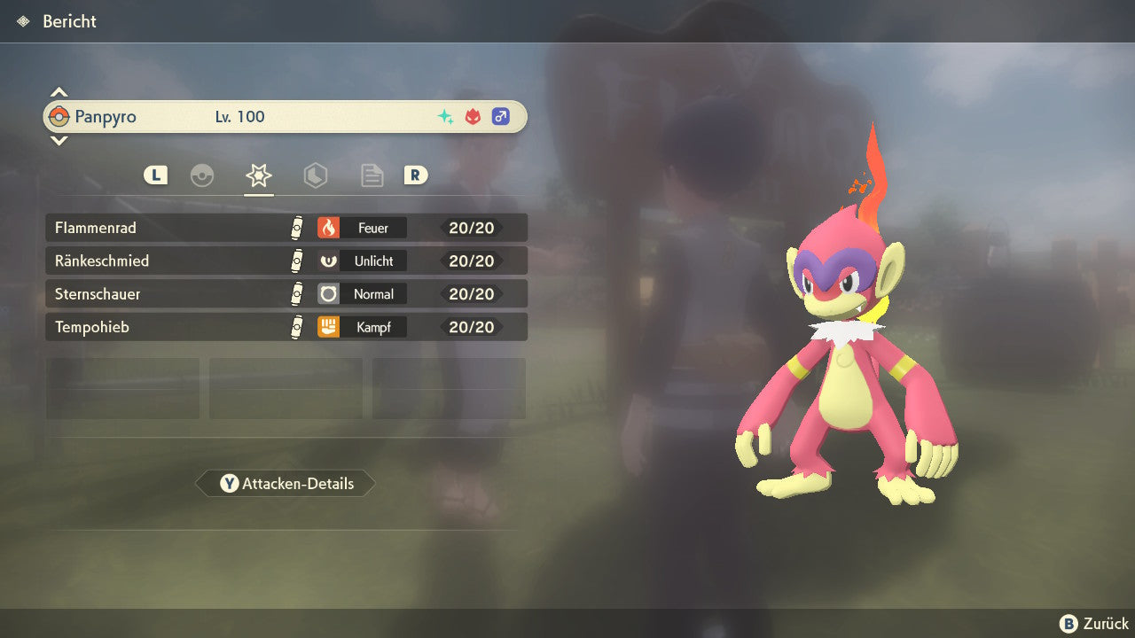 Das Pokemon ist mit beeindruckenden 6×31 IV-Werten ausgestattet. Das bedeutet, dass es auf allen sechs Werten (KP, Ang., Sp-Ang., Vert., Sp-Vert., Init.) die maximalen 31 IV/DV-Punkte besitzt. Dein Pokemon startet somit mit herausragender Stärke in digitale Kämpfe.