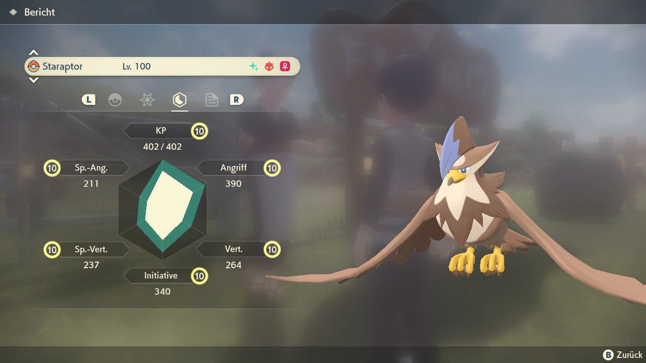 Das Pokemon ist mit beeindruckenden 6×31 IV-Werten ausgestattet. Das bedeutet, dass es auf allen sechs Werten (KP, Ang., Sp-Ang., Vert., Sp-Vert., Init.) die maximalen 31 IV/DV-Punkte besitzt. Dein Pokemon startet somit mit herausragender Stärke in digitale Kämpfe.
