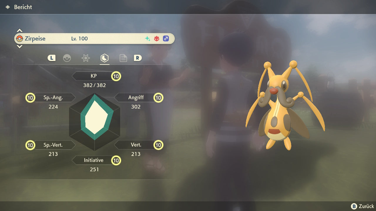 Das Pokemon ist mit beeindruckenden 6×31 IV-Werten ausgestattet. Das bedeutet, dass es auf allen sechs Werten (KP, Ang., Sp-Ang., Vert., Sp-Vert., Init.) die maximalen 31 IV/DV-Punkte besitzt. Dein Pokemon startet somit mit herausragender Stärke in digitale Kämpfe.