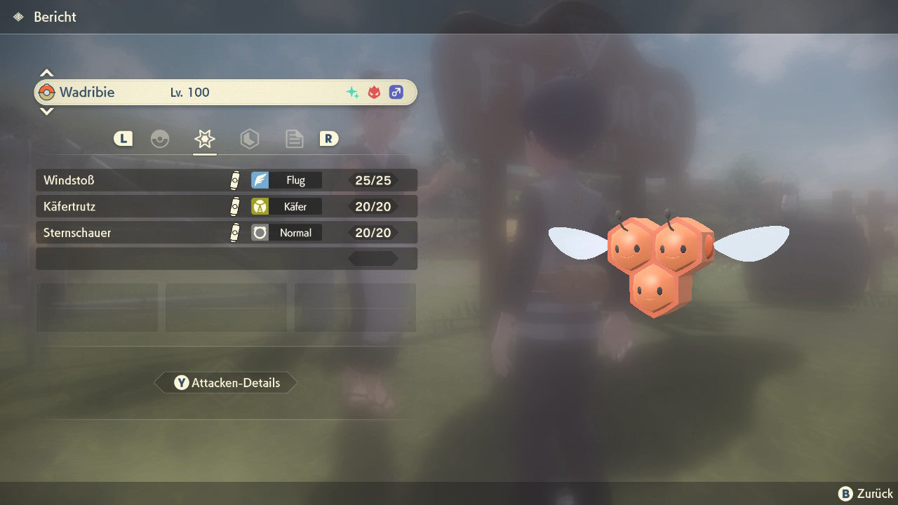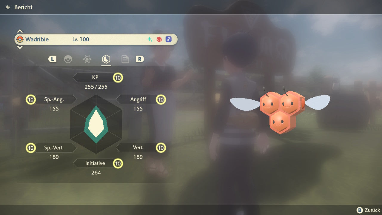 Das Pokemon ist mit beeindruckenden 6×31 IV-Werten ausgestattet. Das bedeutet, dass es auf allen sechs Werten (KP, Ang., Sp-Ang., Vert., Sp-Vert., Init.) die maximalen 31 IV/DV-Punkte besitzt. Dein Pokemon startet somit mit herausragender Stärke in digitale Kämpfe.