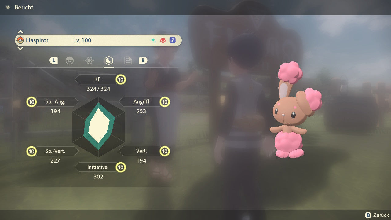 Das Pokemon ist mit beeindruckenden 6×31 IV-Werten ausgestattet. Das bedeutet, dass es auf allen sechs Werten (KP, Ang., Sp-Ang., Vert., Sp-Vert., Init.) die maximalen 31 IV/DV-Punkte besitzt. Dein Pokemon startet somit mit herausragender Stärke in digitale Kämpfe.